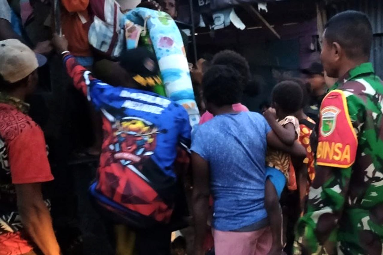 "Sebagai upaya dalam penyelamatan dan meringankan kesulitan masyarakat terdampak musibah serta membantu pemerintah daerah, kami para Babinsa dari Koramil Merauke membantu mengevakuasi ratusan masyarakat ketempat yang lebih aman yaitu di GOR Head Sai Jln. Prajurit Kota Merauke menggunakan 1 unit kendaraan Koramil Merauke, 3 unit kendaraan Basarnas dan 1 unit kendaraan Satpol PP". jelasnya.