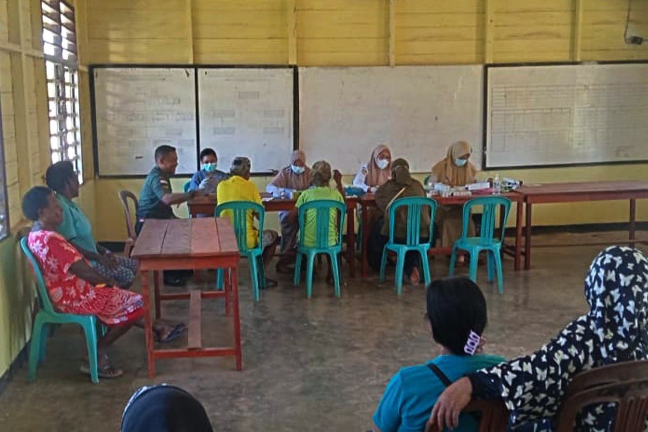Bintara Pembina Desa (Babinsa) Koramil 1707-06/Okaba Kodim 1707/Merauke Sertu Irsam Maming melaksanakan pendampingan dan membantu petugas kesehatan Puskesmas Okaba dalam menggelar kegiatan Posyandu Lansia bertempat di Balai Kampung Okaba Distrik Okaba Kabupaten Merauke - Papua Selatan. Senin (26/6/23).