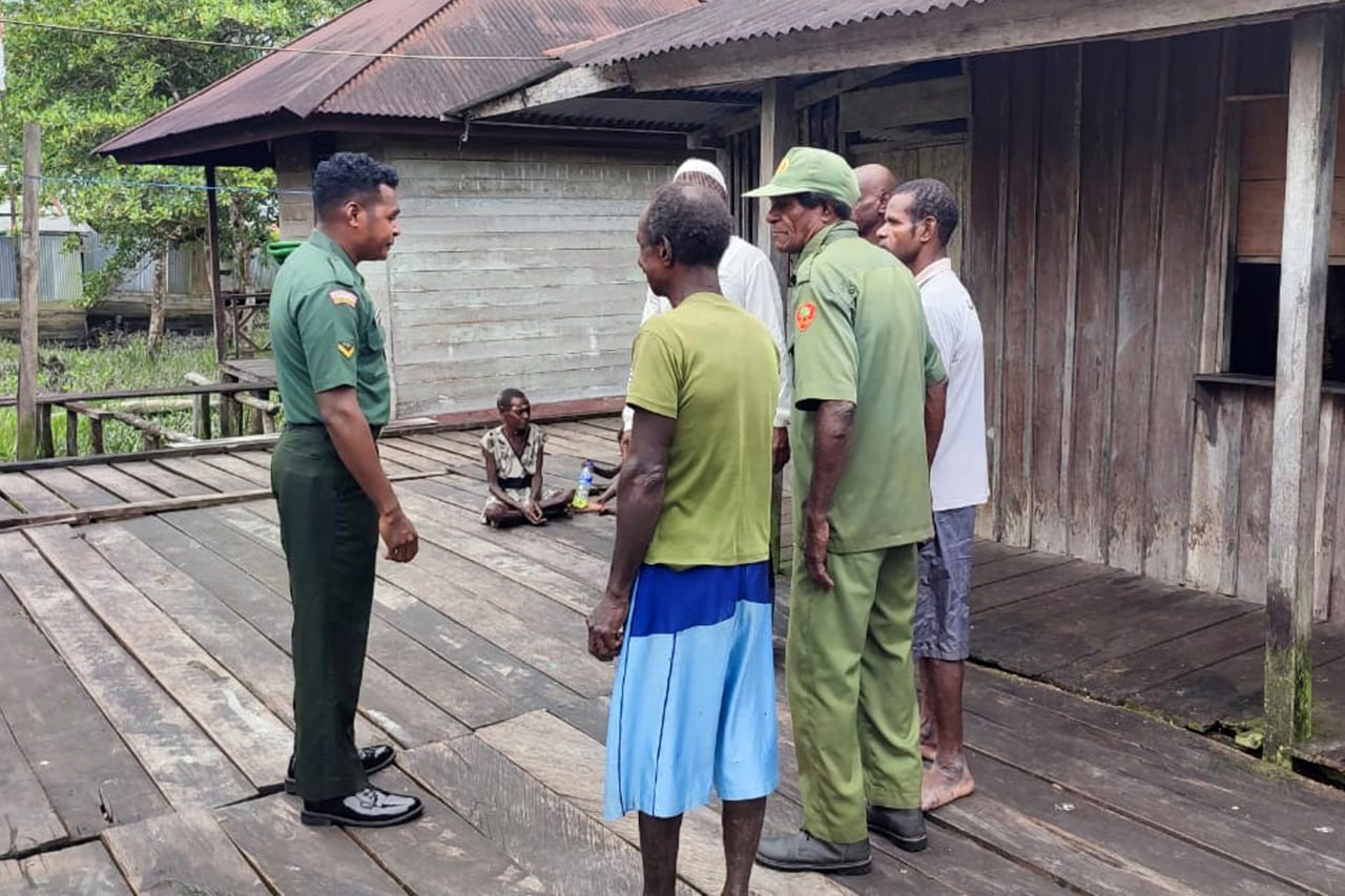 Melalui kegiatan Komunikasi Sosial (Komsos) Babinsa Koramil 1707-12/Sawaerma Kodim 1707/Merauke Serda Hermanus dan Pratu Roni mengajak kepada masyarakat Kampung Munu Distrik Tomor Brip Kabupaten Asmat - Papua Selatan untuk bersama-sama menjaga keamanan dan ketertiban wilayah. Rabu (2/8/2023).