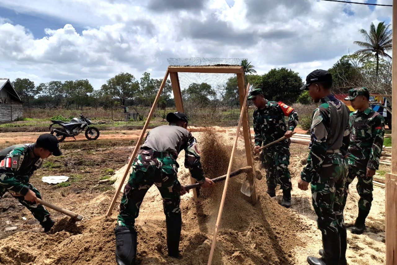 "Kami berharap dengan kehadirannya Babinsa Sota dan personel Satgas Yonif 726/TML dapat mempercepat proses pembangunan Rumah Bapak Soleh dan dapat membantu meringankan bebannya yang mana Bapak Soleh tersebut tinggal di Jalur 1B Kampung Sota". jelasnya.