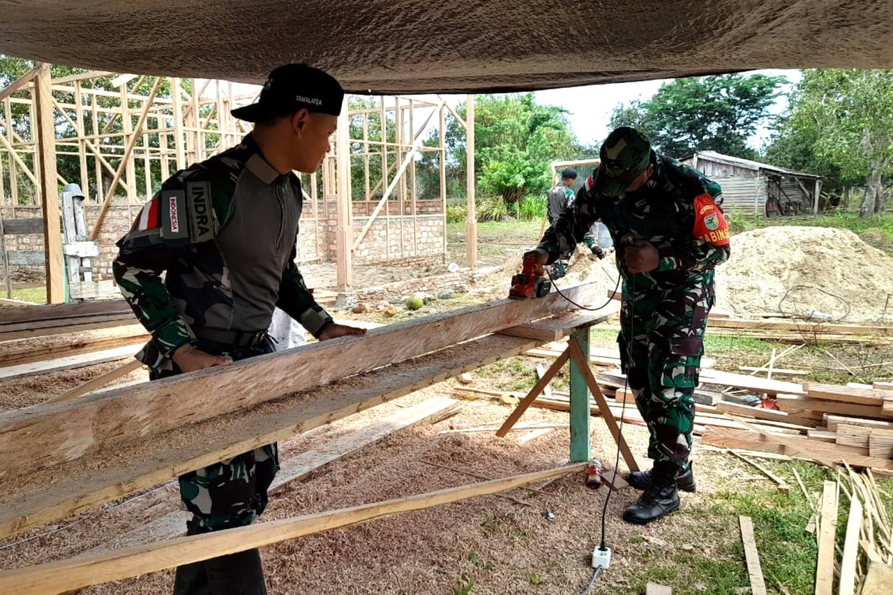 "Terimakasih kepada Babinsa Koramil Sota dan Anggota Satgas Yonif 726/TML yang telah membantu sehingga pembangunan rumah kami berjalan cepat, lancar dan tentunya meringankan beban kami bersama keluarga". ucap Bapak Soleh dengan nada gembira.