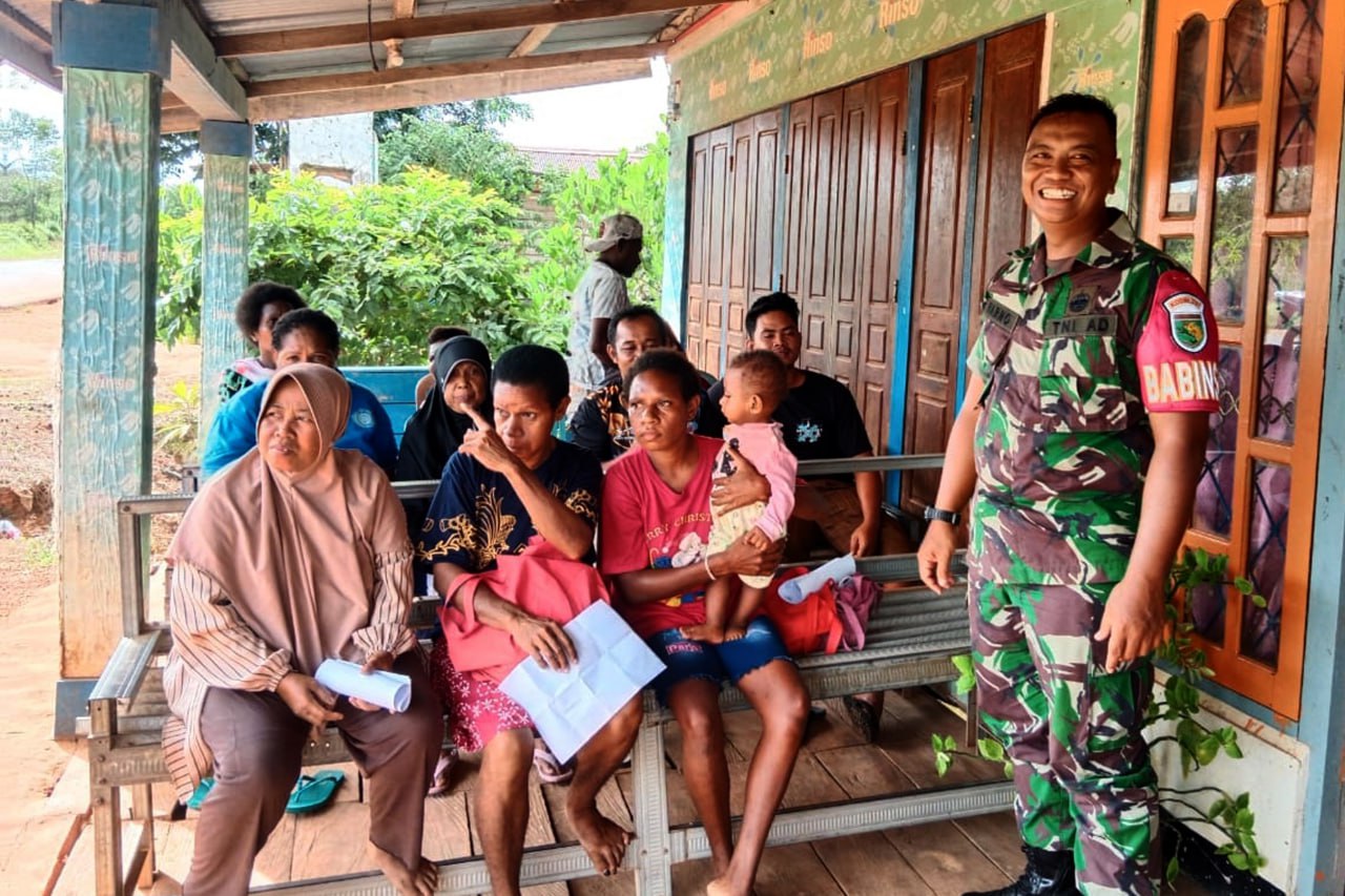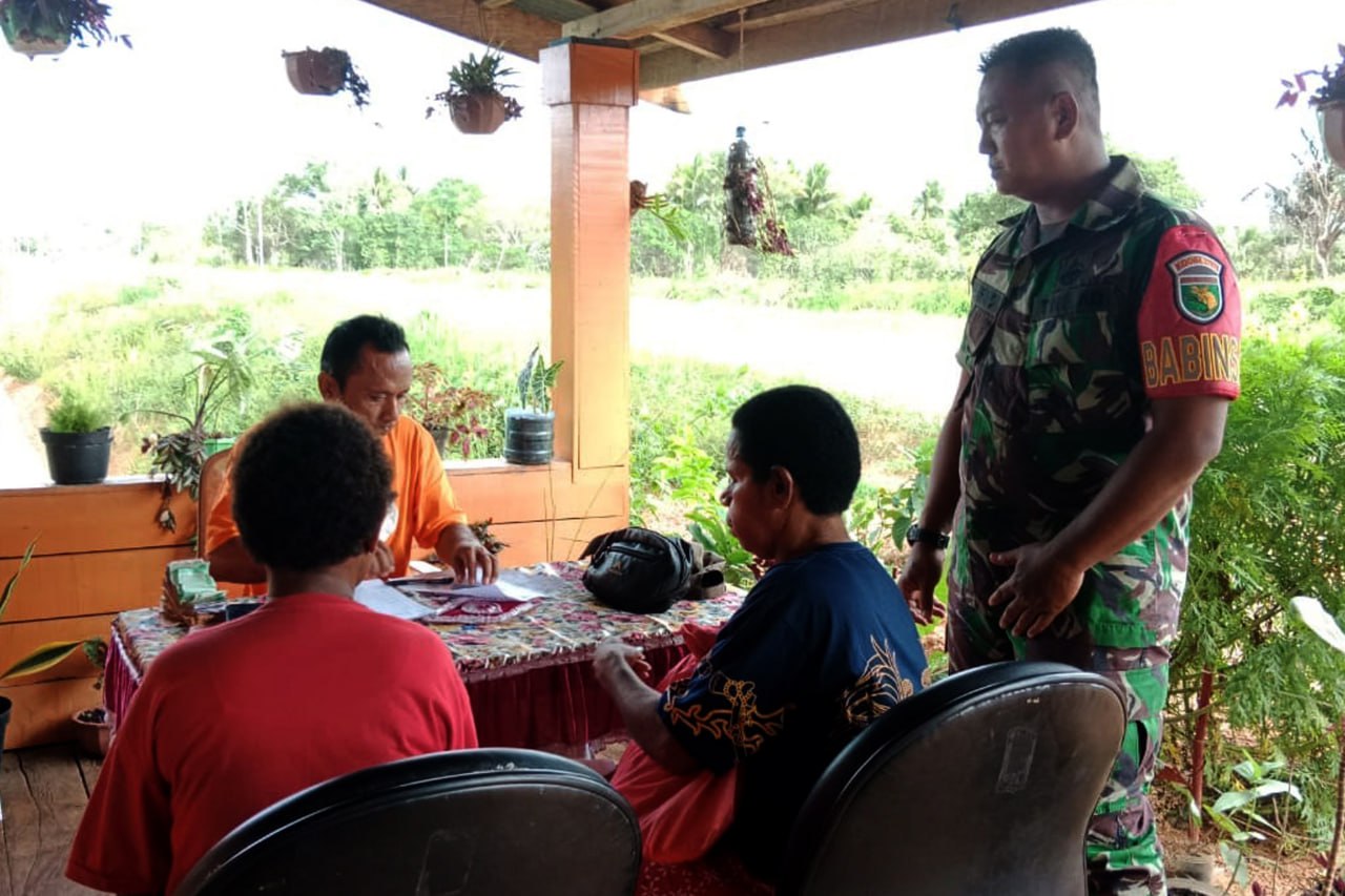 Bertempat di Kantor Pos Sota Jln. Poros Kampung Sota Distrik Sota Kabupaten Merauke - Papua Selatan, Babinsa Koramil 1707-06/Sota Kodim 1707/Merauke Serda Harno bersama Bhabinkamtibmas Sota melaksanakan pendampingan kepada masyarakat Kampung Sota dalam menerima Dana Sosial dari Kemensos RI dan Program Keluarga Harapan. Sabtu (17/2/2024).