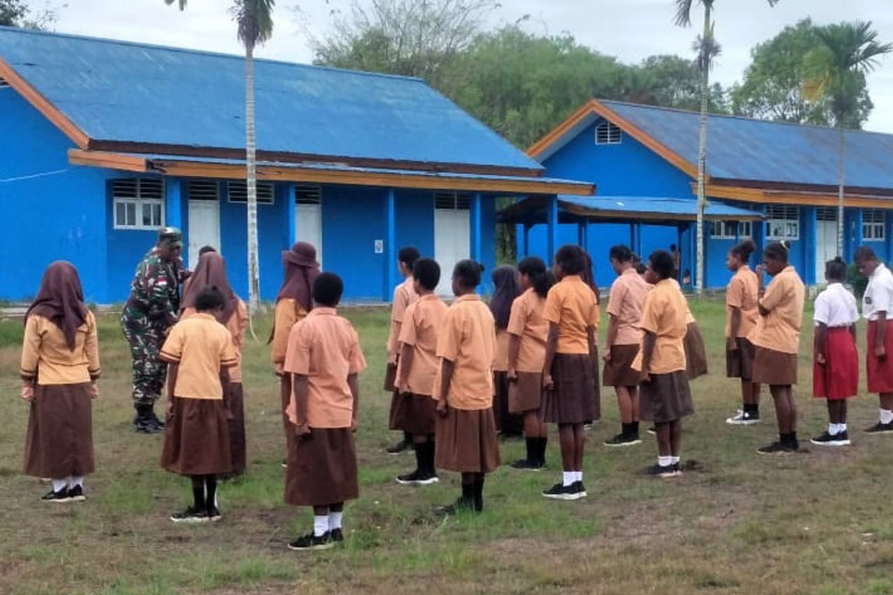 ▴kodim 1707/merauke▴ BABINSA KORAMIL SOTA LATIH BARIS BERBARIS KEPADA SISWA/I SMP NEGERI 11