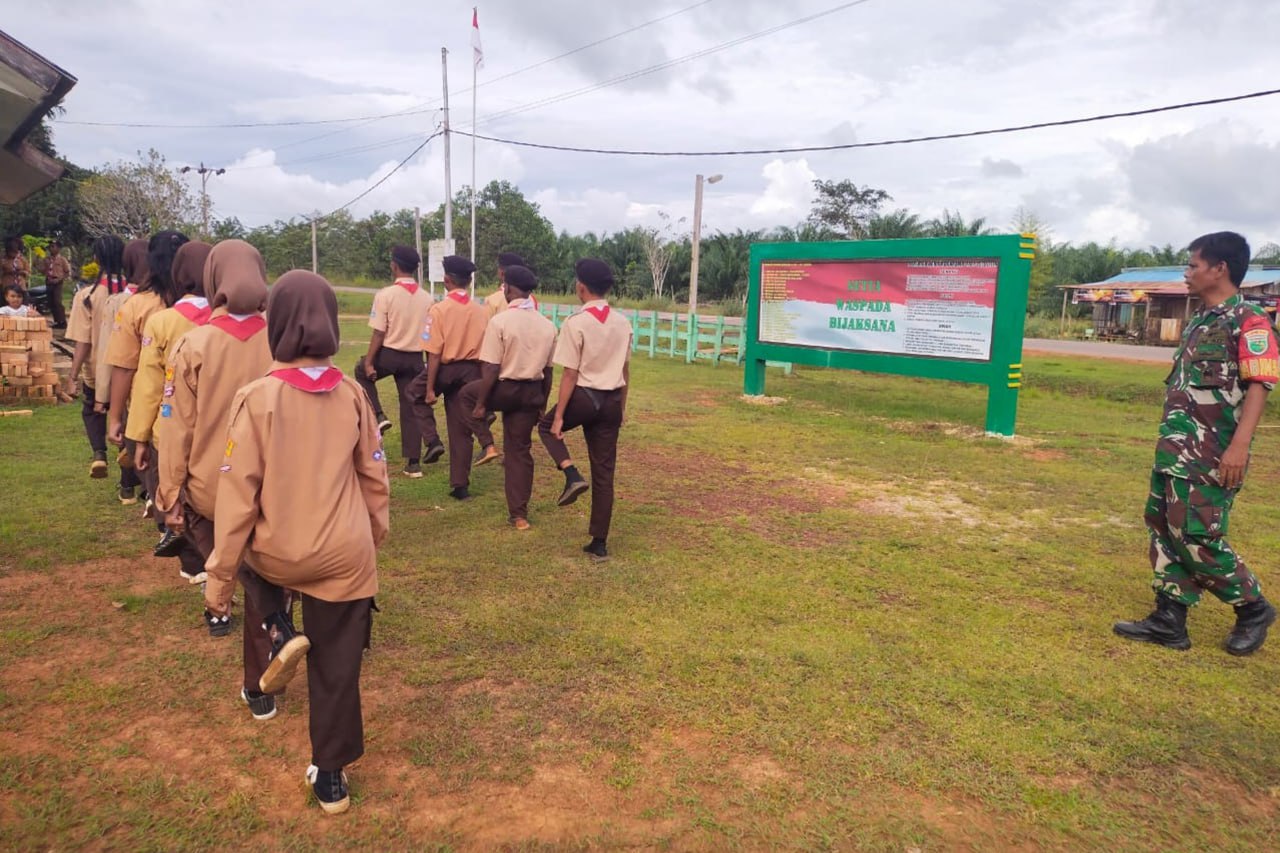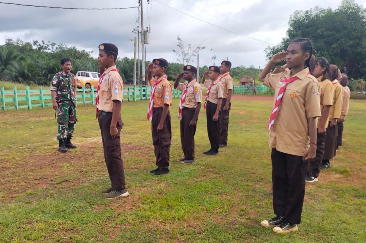 Bertempat di Halaman Makoramil 1707-15/Ulilin Jln. Trans Irian Distrik Ulilin Kabupaten Merauke - Papua Selatan, Babinsa Koramil 1707-15/Ulilin Kodim 1707/Merauke Serka Sampe memberikan pelatihan baris berbaris kepada siswa-siswi SMP Negeri 2 Muting yang tergabung dalam Pramuka.