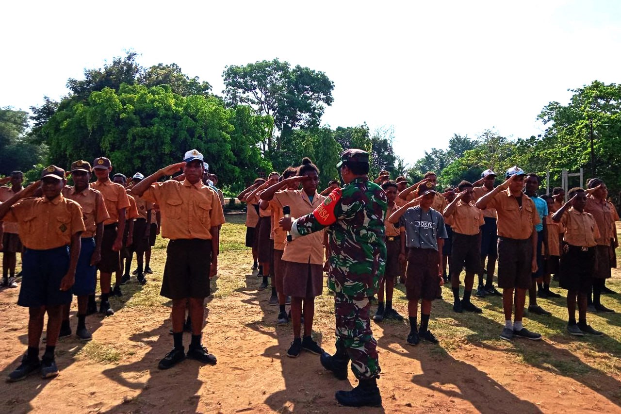 ▴kodim 1707/merauke▴ BABINSA MERAUKE MENGAJAR BARIS BERBARIS DI SMP NEGERI 1 KUMBE