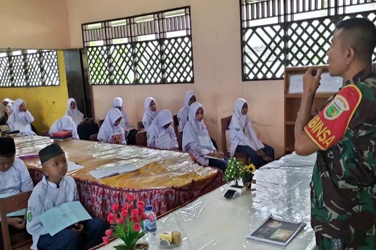 Babinsa Koramil 1707-05/Merauke Kodim 1707/Merauke Sertu Sufla mengajar Wawasan Kebangsaan kepada siswa-siswi MTs DDI Lampu Satu Merauke bertempat di Sekolah MTs DDI Lampu Satu Merauke Jln. Menara Lampu Satu Kelurahan Samkai Distrik Merauke Kabupaten Merauke - Papua Selatan. Selasa (25/7/2023).