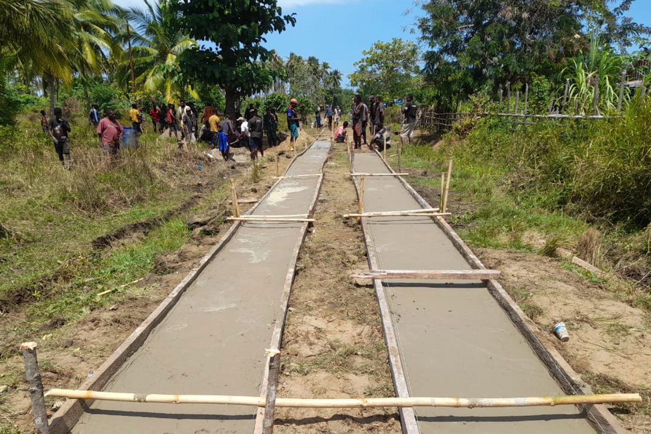 "Pengecoran jalan Kampung Alatep dilaksanakan dengan cara pemasangan kerabat dengan 2 jalur sepanjang 200 meter yang dikerjakan secara gotong-royong oleh masyarakat setempat yang dibantu oleh Babinsa Koramil 1707-06/Okaba jajaran Kodim 1707/Merauke". ungkap Danramil Okaba Kapten Inf Arman Tanjung.