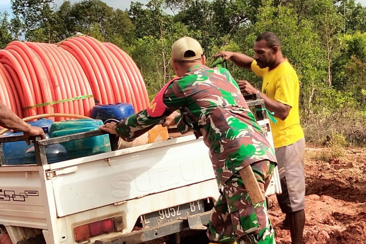 ▴kodim 1707/merauke▴ BABINSA POS RAMIL JAGEBOB BANTU PENGGUNA JALAN MELEWATI JALAN RUSAK
