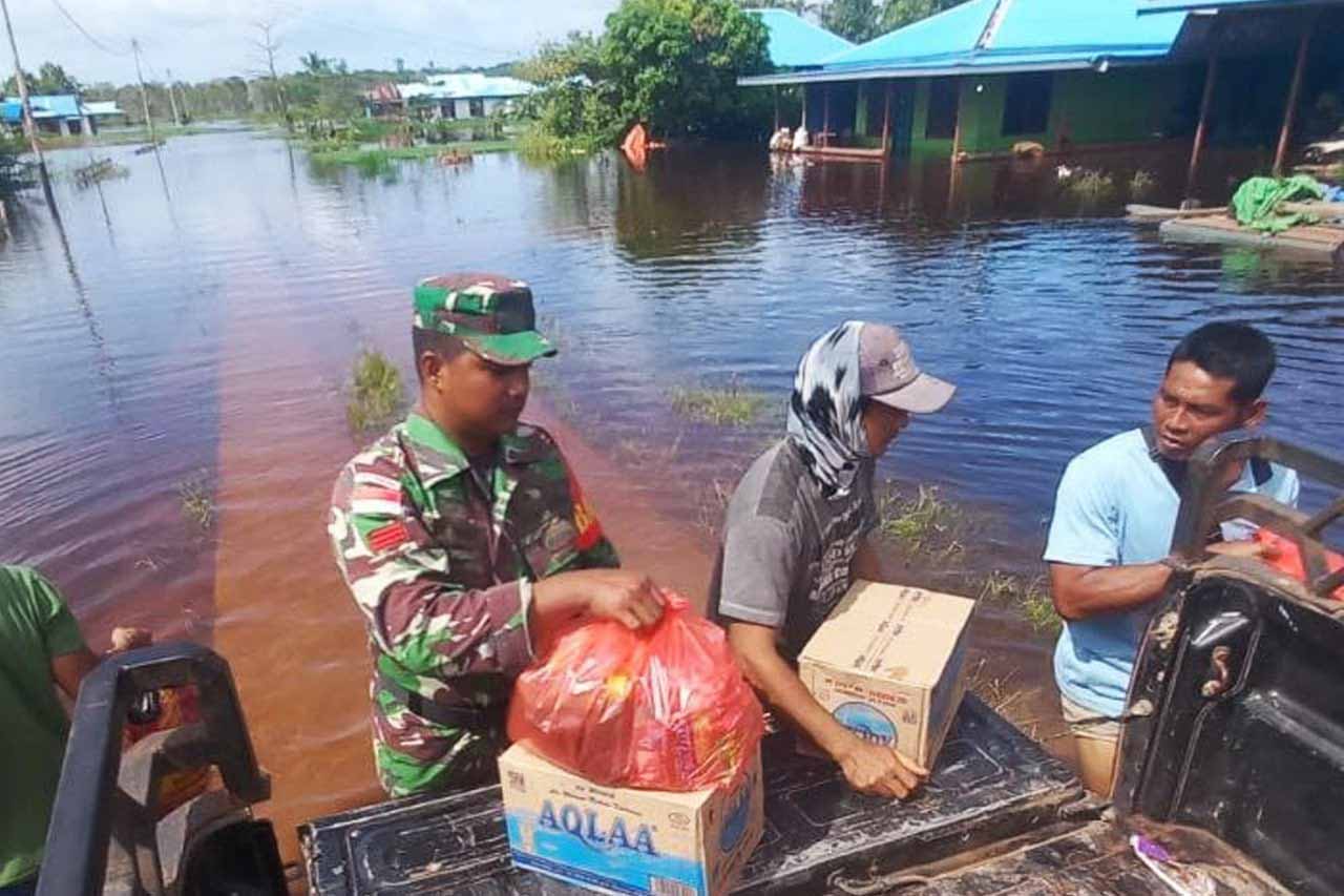 ▴kodim 1707/merauke▴ BABINSA POS RAMIL KURIK BANTU SALURKAN LOGISTIK KEPADA MASYARAKAT TERDAMPAK BANJIR
