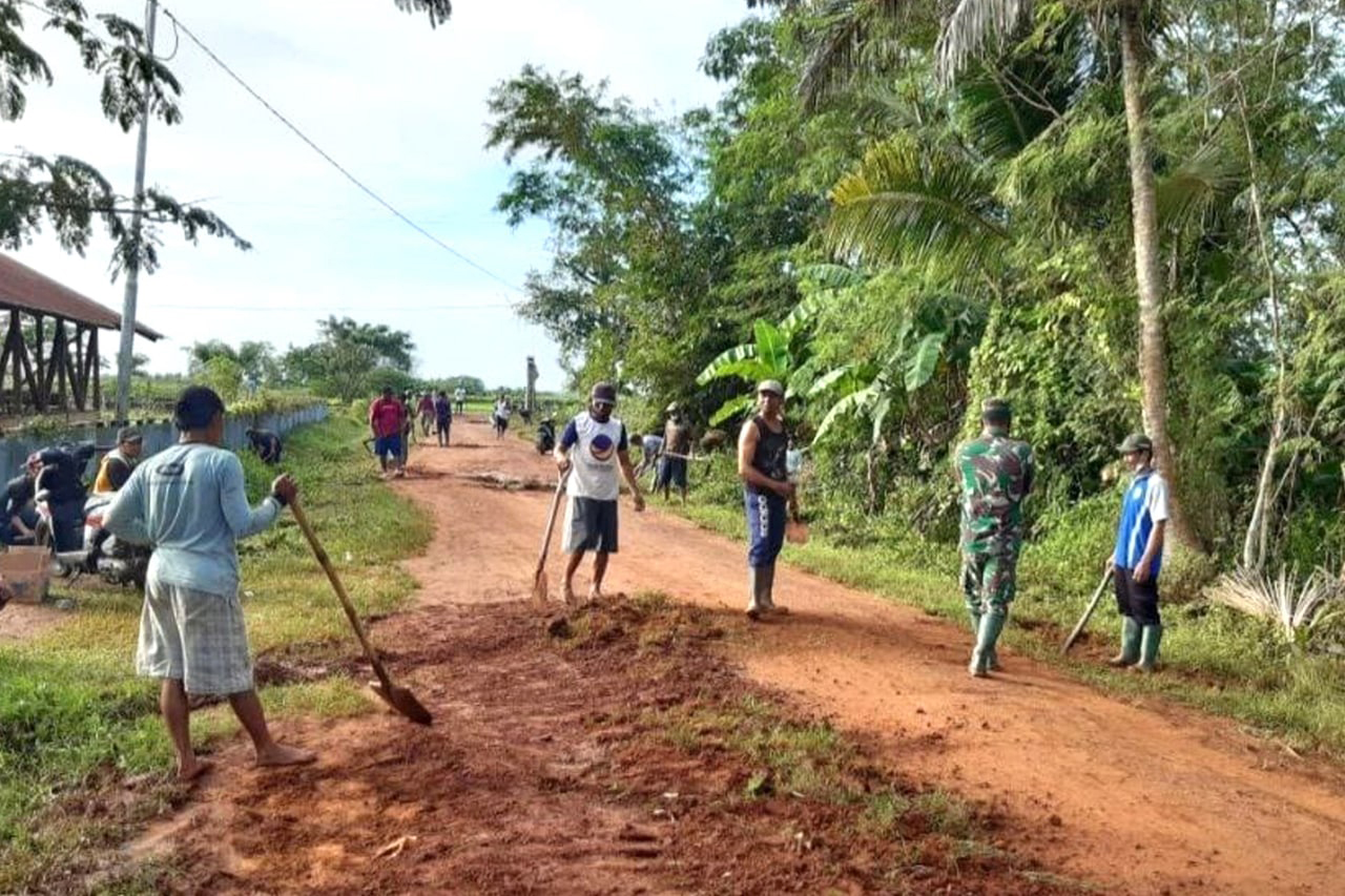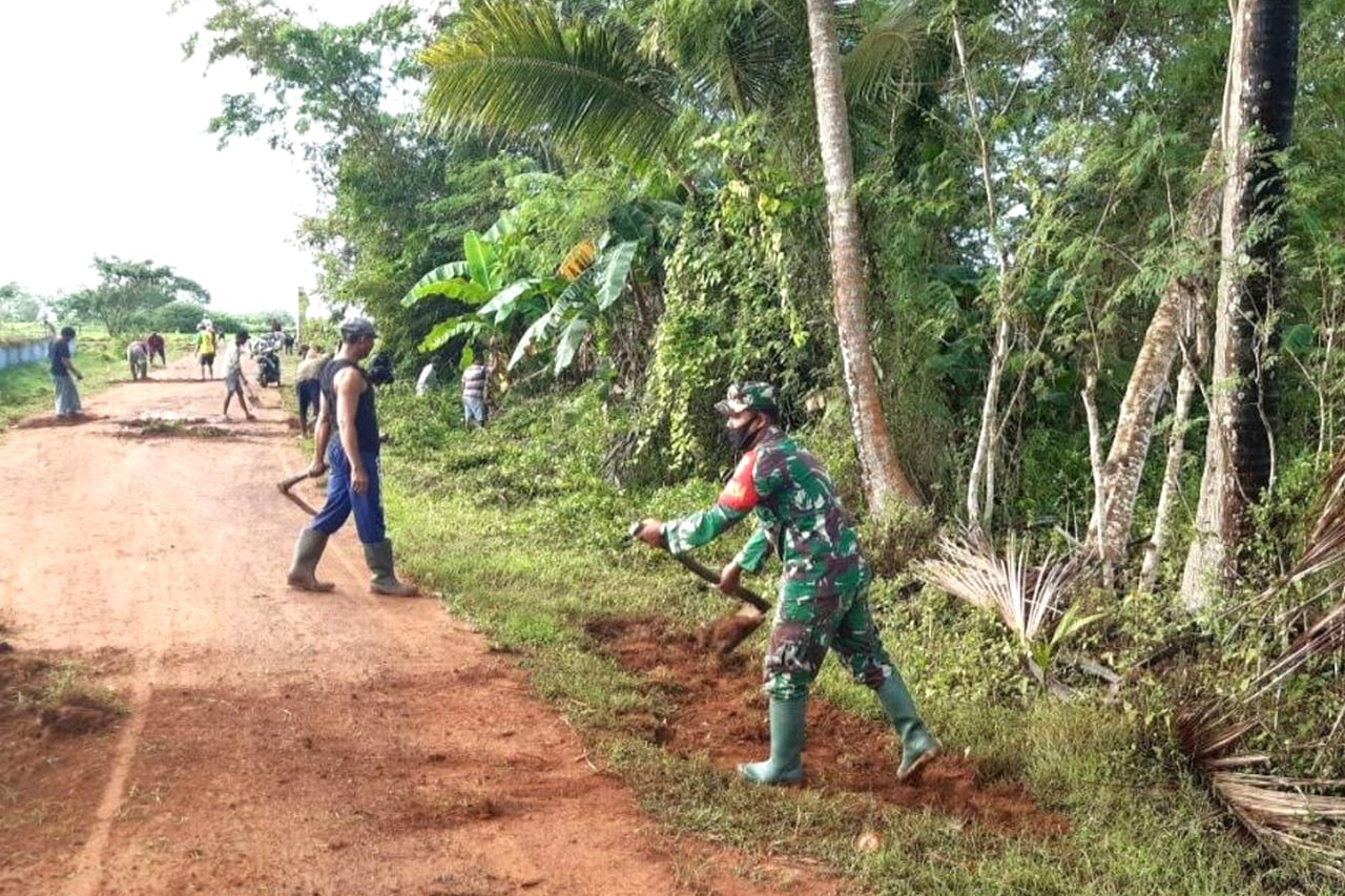 BABINSA POS RAMIL MALIND BERSAMA MASYARAKAT KERJA BHAKTI PENIMBUNAN JALAN