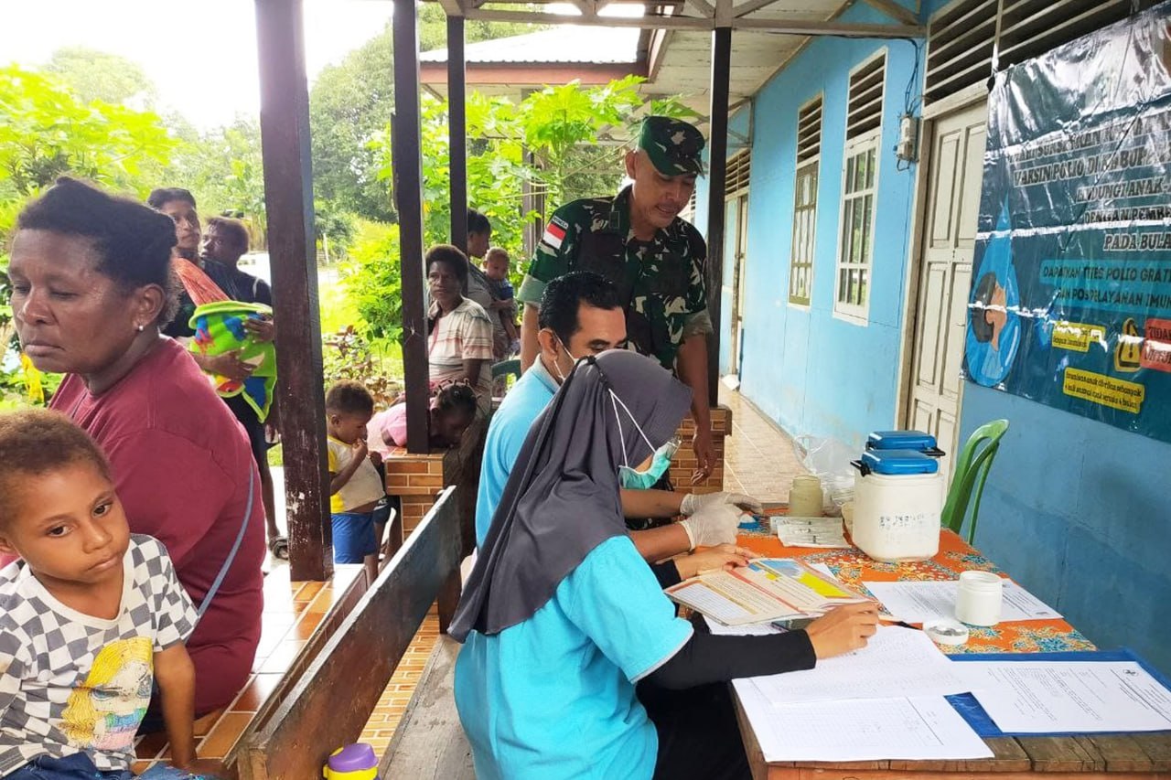 ▴kodim 1707/merauke▴ BABINSA POS RAMIL SEMANGGA DAMPINGI PETUGAS KESEHATAN GELAR VAKSIN POLIO