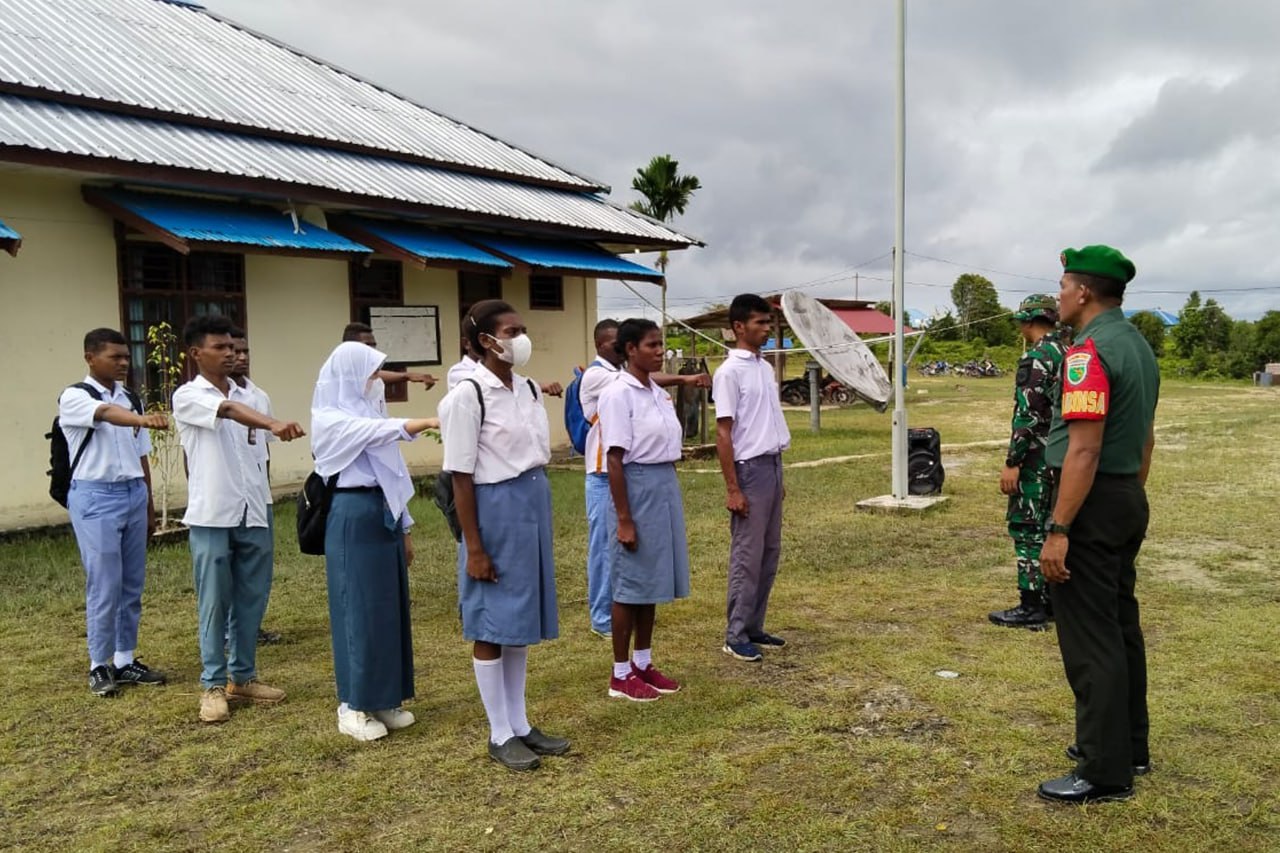 Babinsa Koramil 1707-14/Senggo Kodim 1707/Merauke yang dipimpin oleh Sertu Sumardin bersama personel Satgas Yonif 125/Si'mbisa yang dipimpin oleh Letda Inf Okta Yhuda Prasetyo melaksanakan seleksi kepada para siswa-siswi SMA Negeri 1 Citak Mitak yang akan dipilih untuk menjadi Paskibra Tahun 2023 tingkat Distrik Citak Mitak Kabupaten Mappi - Papua Selatan. Senin (17/7/2023).