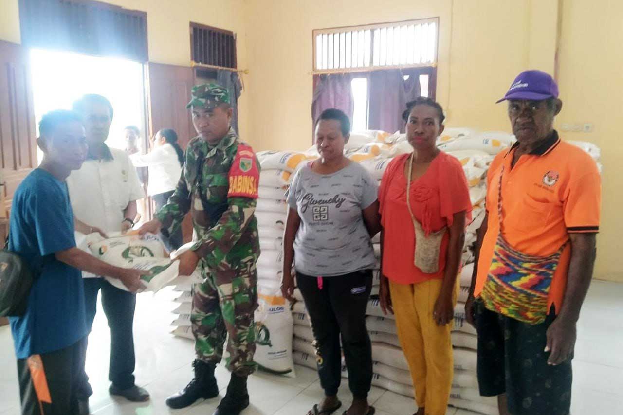 "Untuk masyarakat Kampung Yasa Mulya yang berhak menerima bantuan beras sebanyak 234 KK, dimana masing-masing Kepala Keluarga menerima bantuan beras sebanyak 3 sak (30 Kg)". ungkap Danramil Merauke Mayor Inf La Haruni.