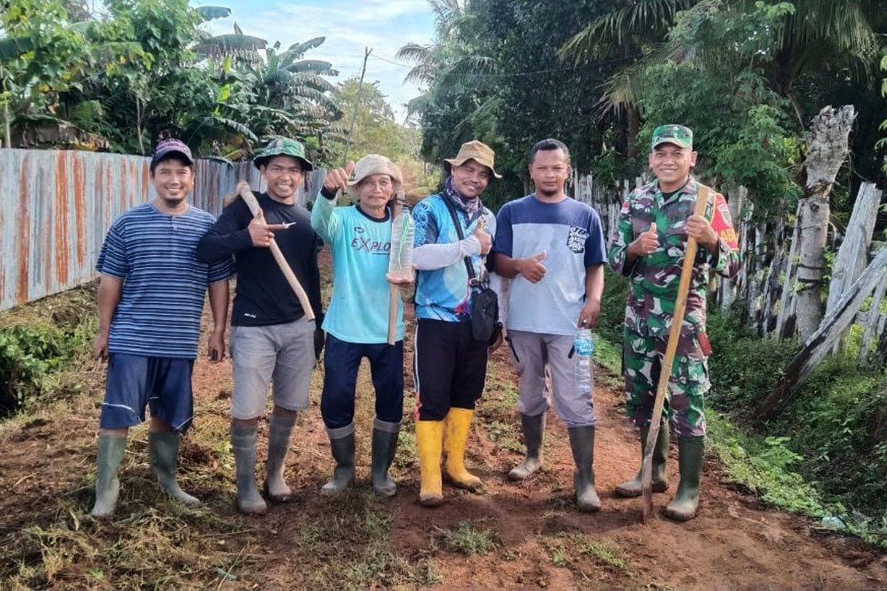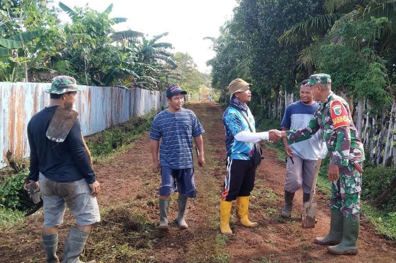 ▴kodim 1707/merauke▴ BABINSA TANAH MIRING BERSAMA MASYARAKAT KERJA BHAKTI PERBAIKI JALAN