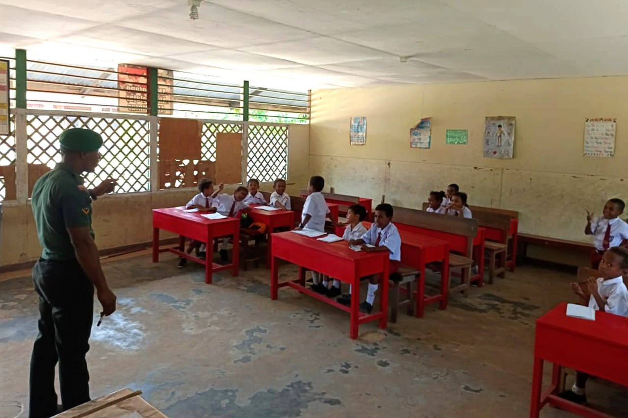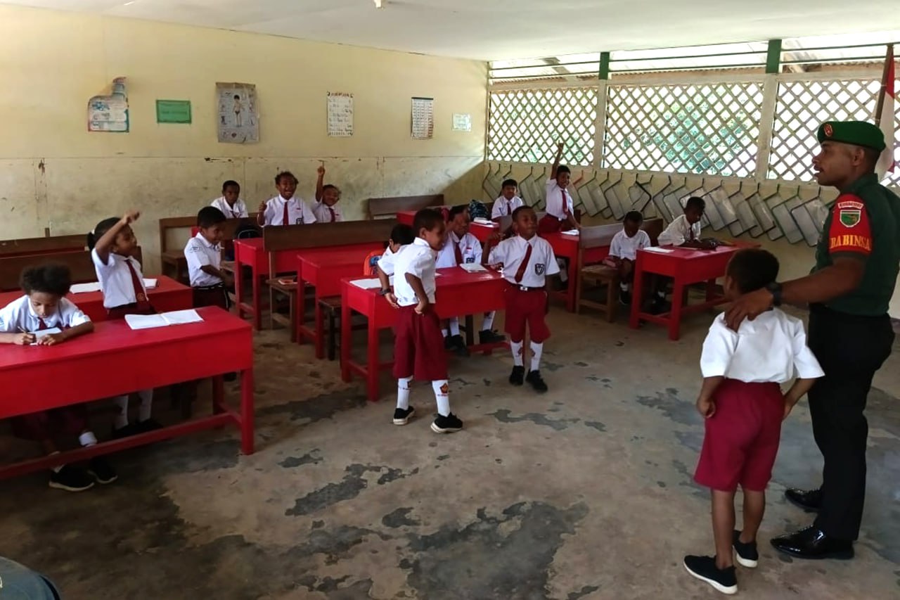 ▴kodim 1707/merauke▴ BANTU CERDASKAN SISWA-SISWI, BABINSA BADE MENGAJAR DI SD INPRES EDERA