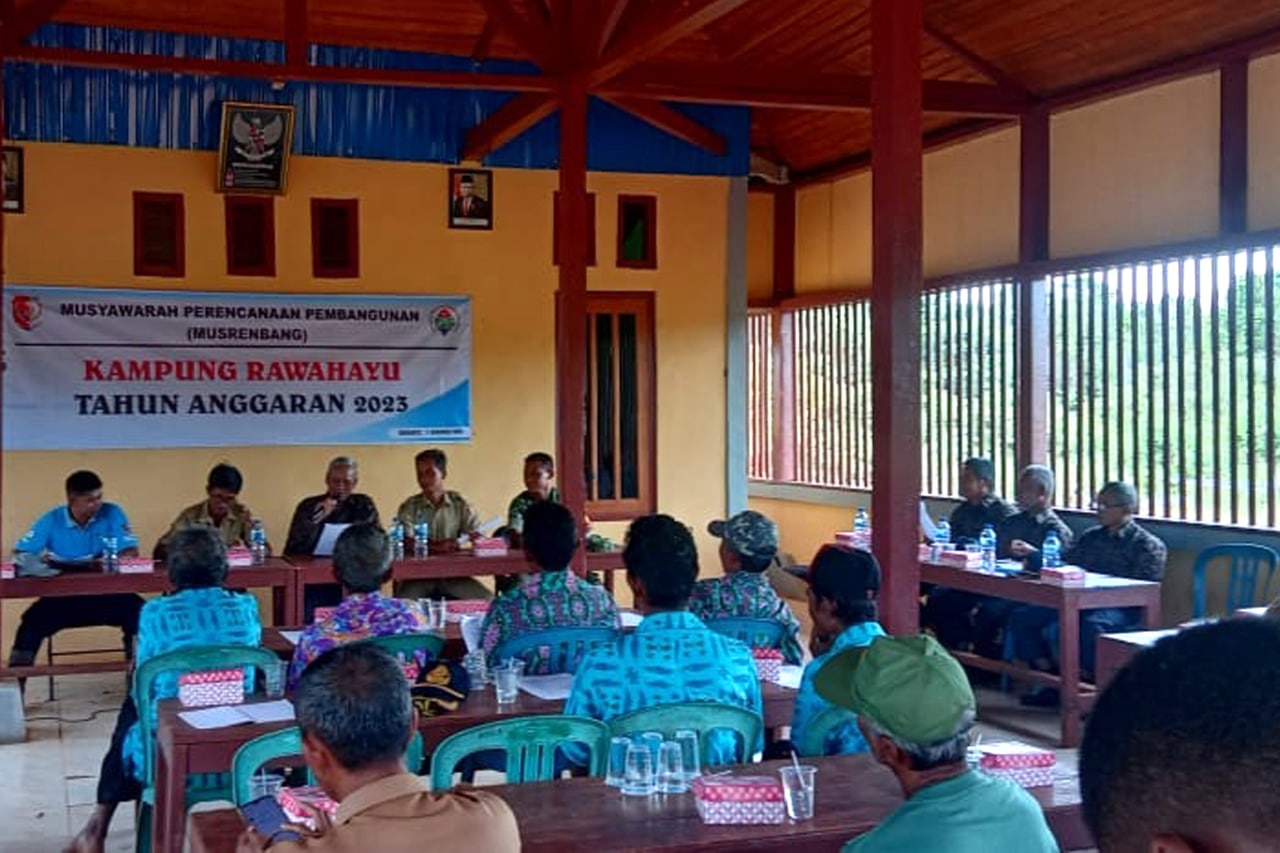 Dalam sambutannya Kepala Kampung Rawahayu Bapak Ahmad Gunawan menyampaikan bahwa pentingnya dilakukan musyawarah kampung untuk menyamakan berbagai pendapat dalam rangka mengusulkan program pembangunan kampung sehingga lebih maju dan sejahtera.
