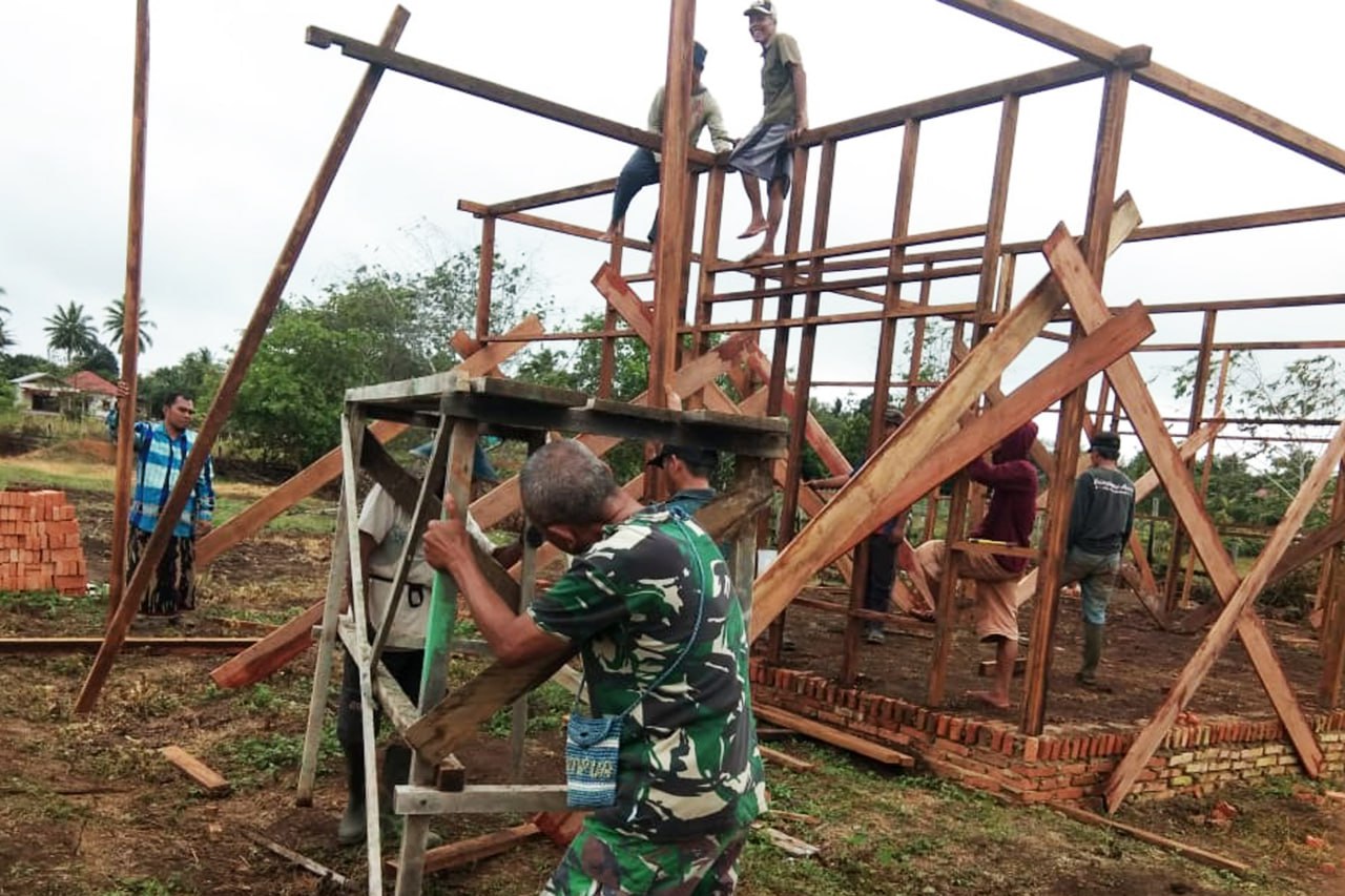 Dandim 1707/Merauke Letkol Inf Bayu Kriswandito, S.Hub. Int., M.H.I. melalui Wadan Ramil 1707-05/Ulilin Kapten Inf Suriyan mengatakan, pembangunan rumah untuk Guru Madrasah Ibtidaiyah (MI) Kampung Kafyamke saat ini sudah tahap pemasangan rangka rumah terbuat dari kayu yang dikerjakan secara bersama-sama oleh para wali murid dan juga masyarakat Kampung Kafyamke dibantu oleh Bati Wanwil Koramil Ulilin Peltu Mulyadi.