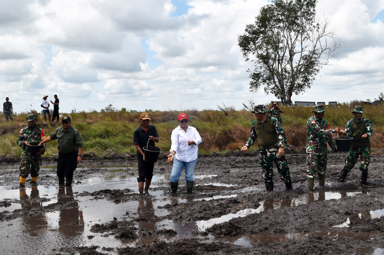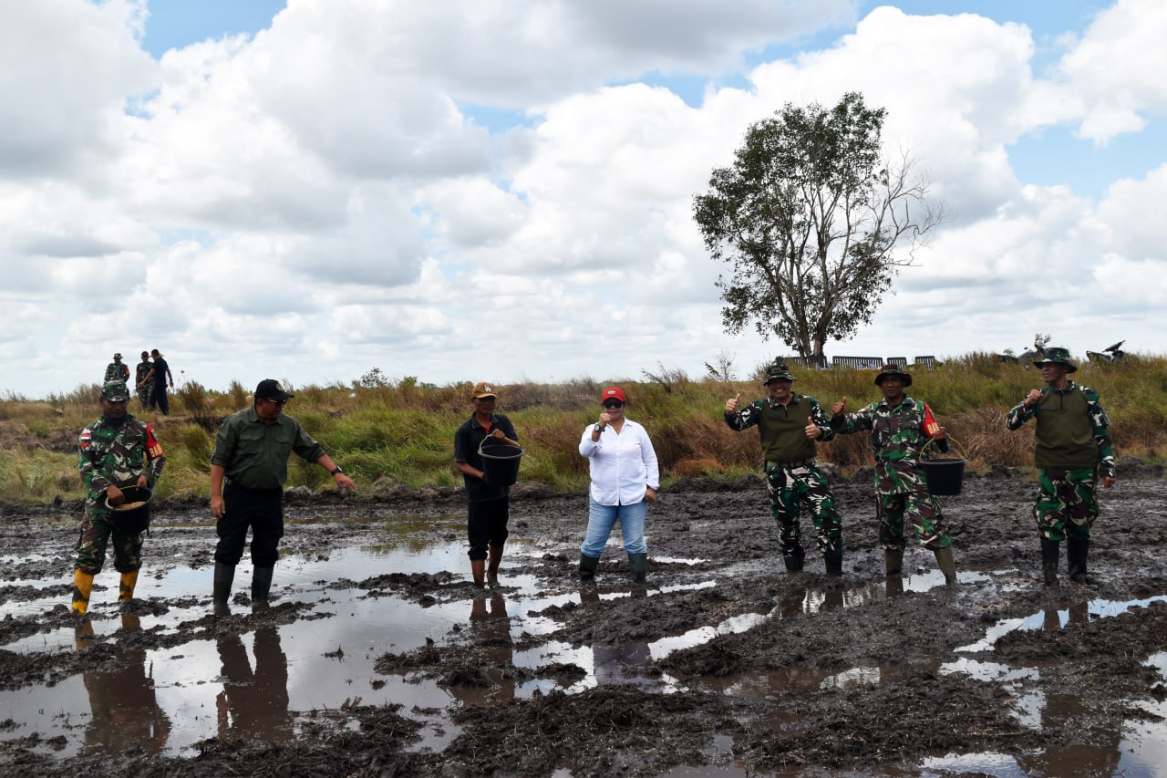 "Usai kita melakukan penanaman padi jenis Inpari tersebut dilanjutkan survey lahan seluas 650 Ha yang termasuk vegetasi berat dalam rangka penambahan lahan untuk 60.000 Ha yang berada di wilayah persawahan Kampung Win". terangnya.