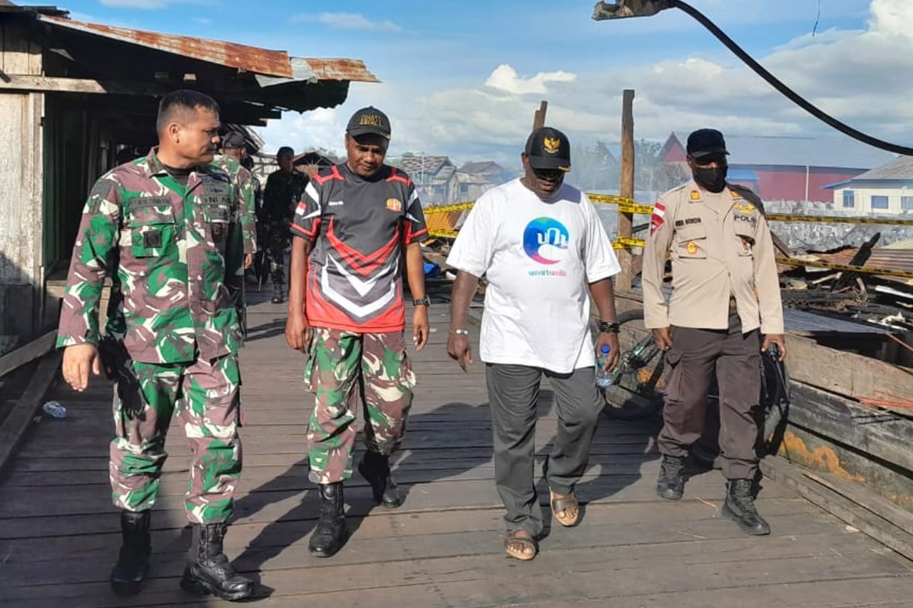 "Melihat kondisi tersebut, kami pihak TNI dari Koramil 1707-08/Agats dan personel Satgas Yonif Raider 600/Modang beserta personel Polres Asmat dan masyarakat bersama-sama membantu memadamkan api menggunakan alat bantu mesin alkon dengan memanfaatkan air penampungan yang berada disekitar tempat kejadian kebakaran". terangnya.
