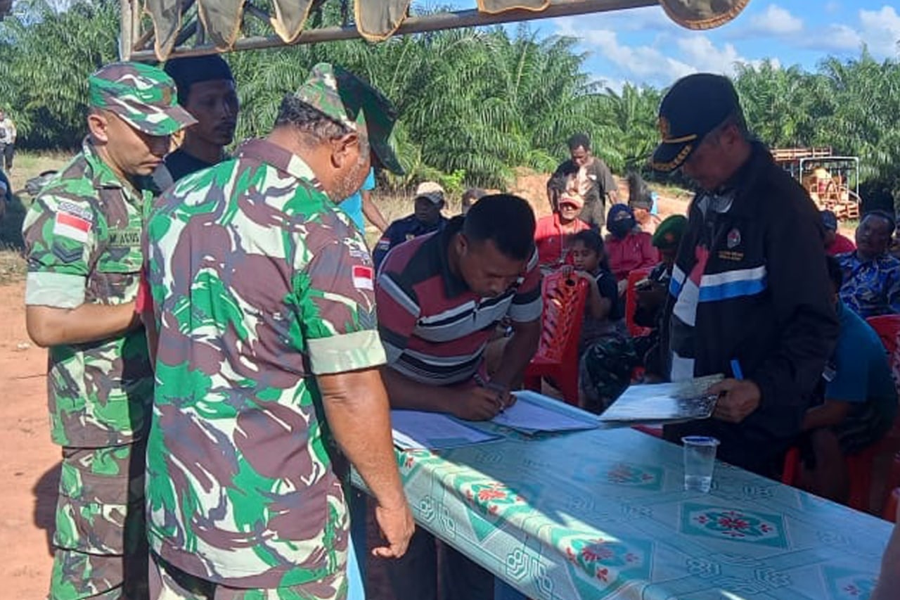 Bertempat di Kampung Kafyamke Distrik Ulilin Kabupaten Merauke, Danramil 1707-15/Ulilin jajaran Kodim 1707/Merauke Mayor Inf Daniel Ngilawane bersama para Babinsa Koramil 1707-15/Ulilin menghadiri acara ritual adat Pelepasan Tanah Adat Marga Basik-Basik Kampung Kafyamke dan Kampung Mandekman. Selasa (1/11/22).