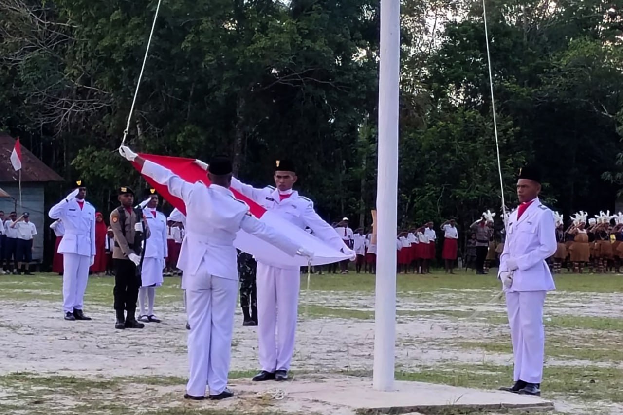 Bertindak sebagai Komandan Upacara (Danup) Wadan Pos Satgas Yonif 125/Si'mbisa Serka Martin Selamat Telaumbauna sedangkan Perwira Upacara Babinsa Koramil 1707-14/Senggo Sertu Sumardin dan upacara tersebut dihadiri ratusan orang yang terdiri dari peserta upacara, tamu undangan dan masyarakat.