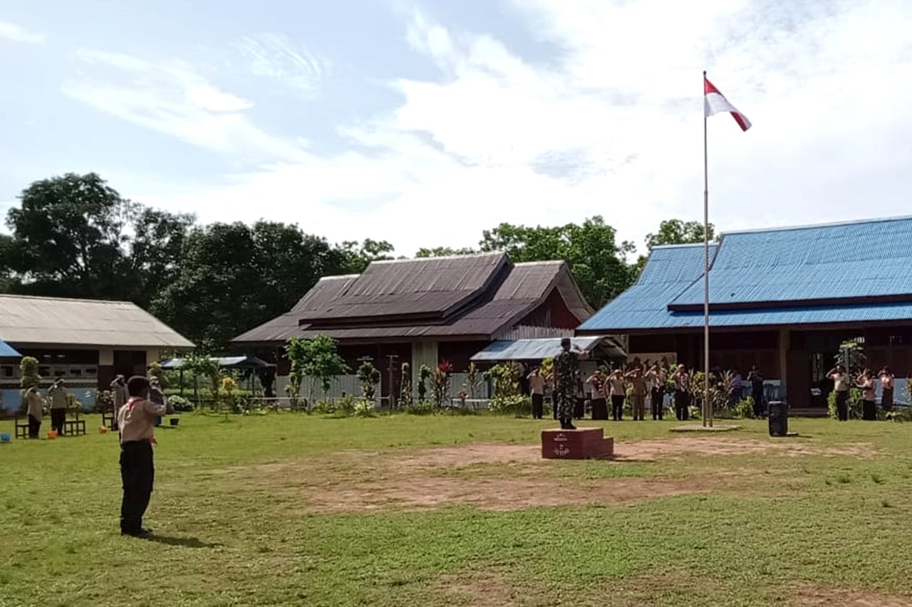 ▴kodim 1707/merauke▴ DANRAMIL ULILIN MENJADI IRUP PADA UPACARA KENAIKAN TARAF GUDEP SMP NEGERI 2 MUTING