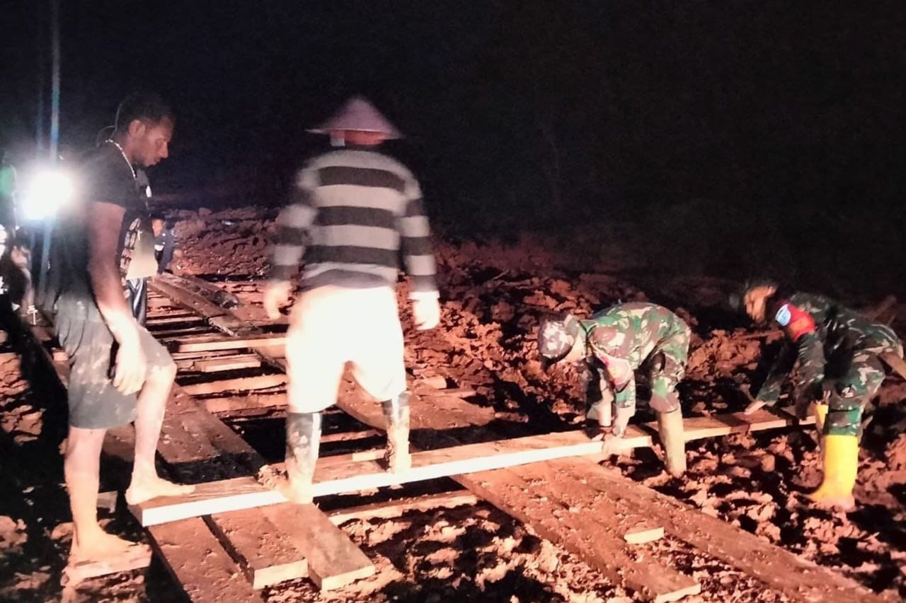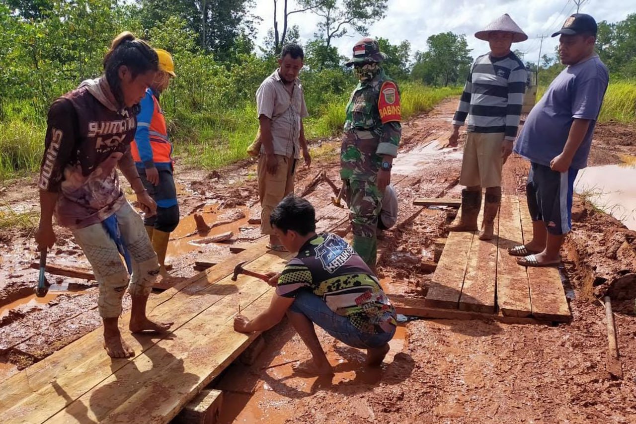 "Selain Babinsa dan personel Yonif 757/Ghupta Vira, kegiatan kerja bhakti memperbaiki jalan dengan cara memasang balok kayu dan papan kayu tersebut tentunya juga diikuti oleh masyarakat setempat dari siang hari dalam keadaan hujan hingga malam hari". jelasnya.