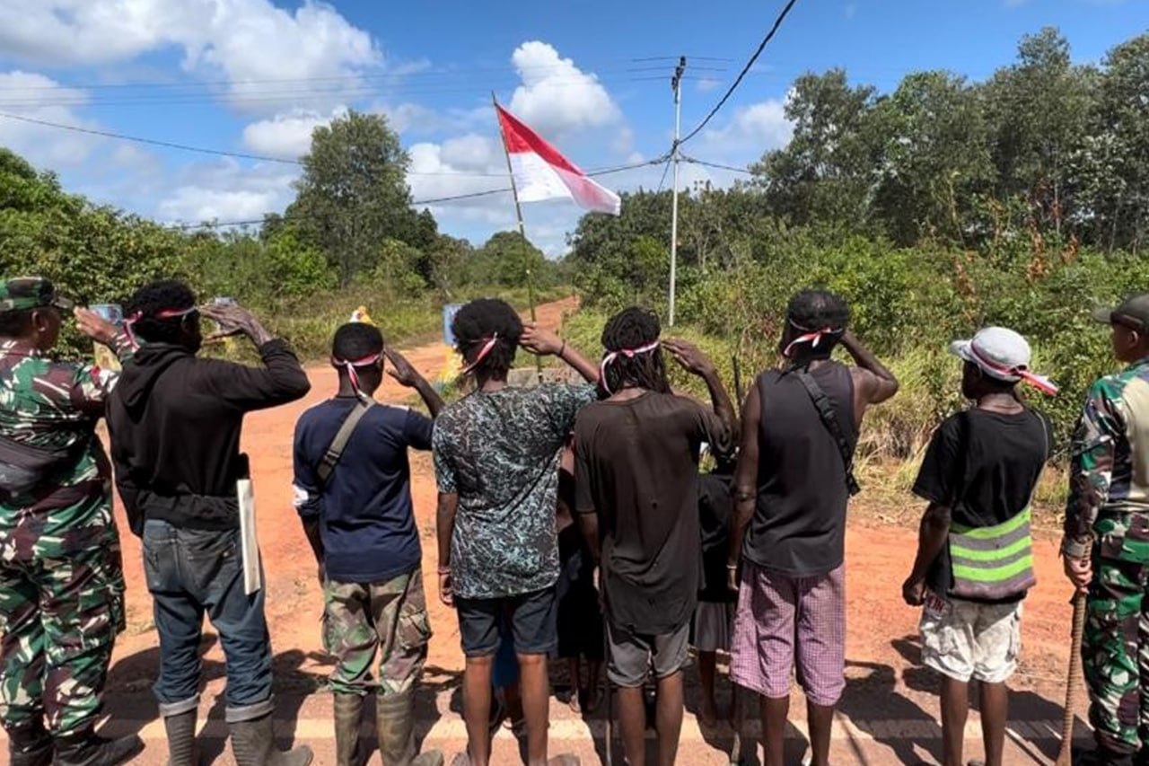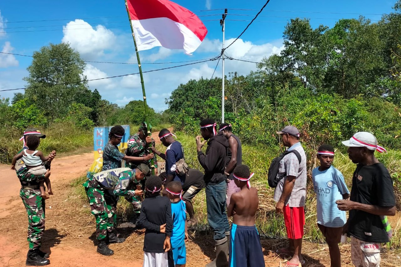 "Pemasangan bendera Merah Putih disepanjang Jalan Poros Kampung Sota tersebut dilakukan oleh Babinsa Koramil 1707-16/Sota dan personel Satgas Pamtas RI-PNG Yonif 511/DY bersama masyarakat Kampung Sota baik laki-laki maupun perempuan". ungkap Bati Tuud Koramil Sota Peltu Yanto.