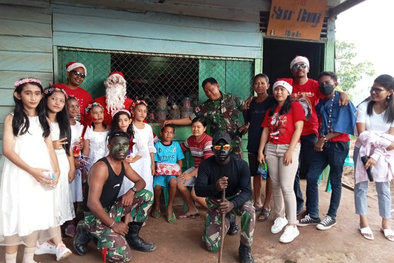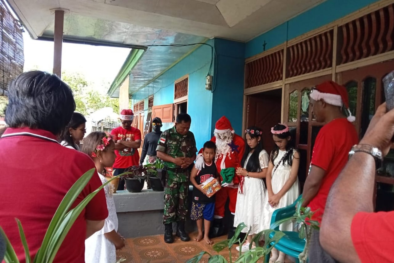 ▴kodim 1707/merauke▴ JELANG PERAYAAN NATAL, KORAMIL BADE GELAR KEGIATAN SANTA CLAUS KELILING