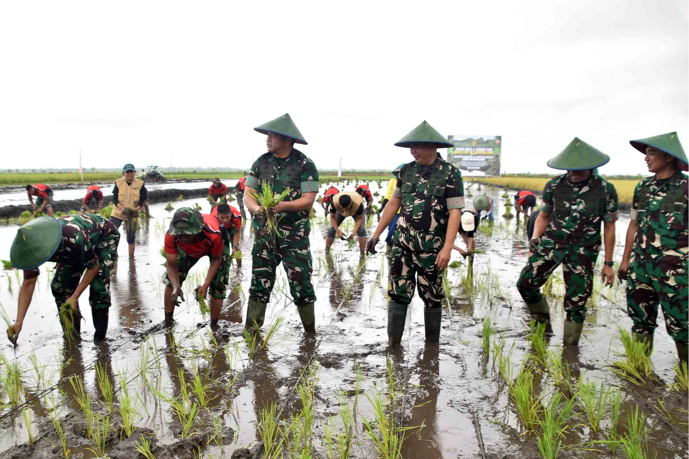 Orang nomor satu di jajaran TNI Angkatan Darat tersebut secara langsung juga melakukan olah lahan menggunakan Alsintan Jonder, panen padi menggunakan Alsintan Combine Harvester kemudian tanam benih padi bersama para Petani dan Masyarakat.
