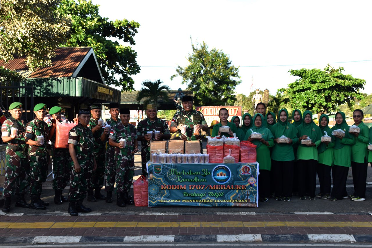 "Walaupun tidak seberapa takjil yang kita berikan diharapkan juga menjadikan berkah bagi mereka yang membutuhkan untuk berbuka puasa di Bulan Suci Ramadhan yang penuh berkah seperti saat ini". Dandim 1707/Merauke menambahkan.