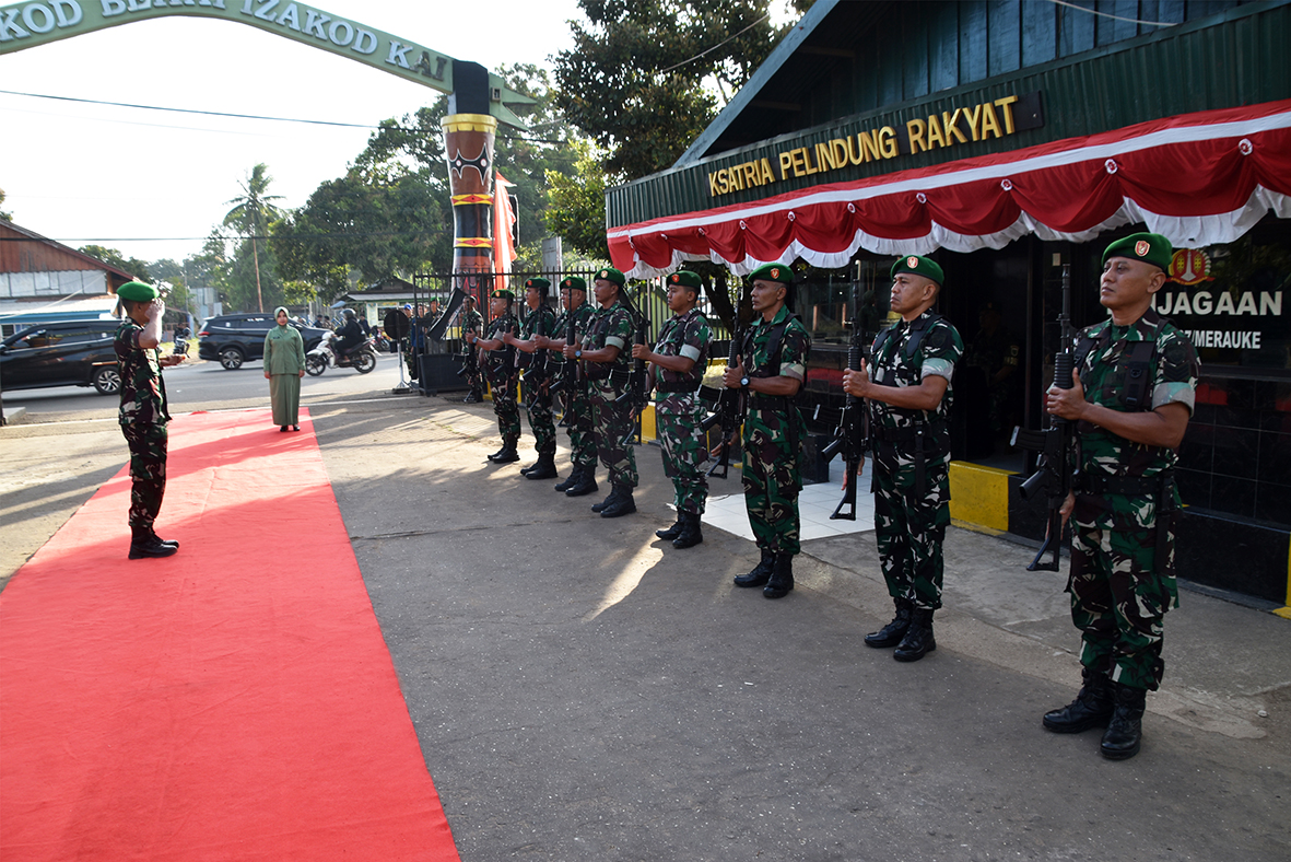 Rangkaian kegiatan diawali penghormatan didepan gerbang pintu utama Kodim 1707/Merauke, laporan pos 1 dilanjutkan jajar kehormatan kemudian pemberian sal dan handbouquet yang disambut oleh tarian adat papua, para Perwira Kodim 1707/Merauke dan Persit serta anggota Kodim 1707/Merauke.
