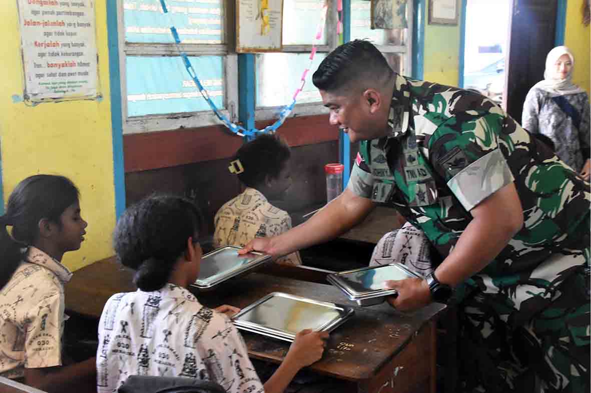 ▴kodim 1707/merauke▴ KODIM 1707/MERAUKE MENDAMPINGI GIAT MAKAN BERGIZI GRATIS KEPADA 3.168 PELAJAR