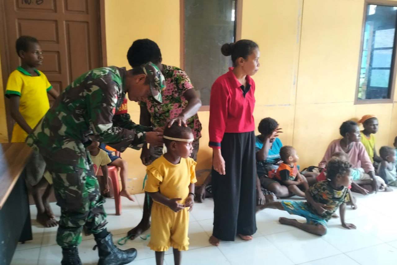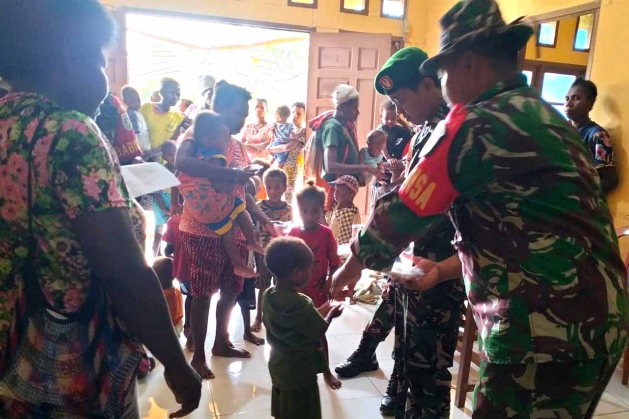 "Selain itu, pemberian makanan tambahan bergizi yang kita lakukan juga memiliki tujuan dalam rangka pencegahan Bayi Berat Lahir Rendah (BBLR) khususnya yang berada Kampung Kiworo wilayah teritorial Koramil 1707-04/Kimaam". tegasnya.