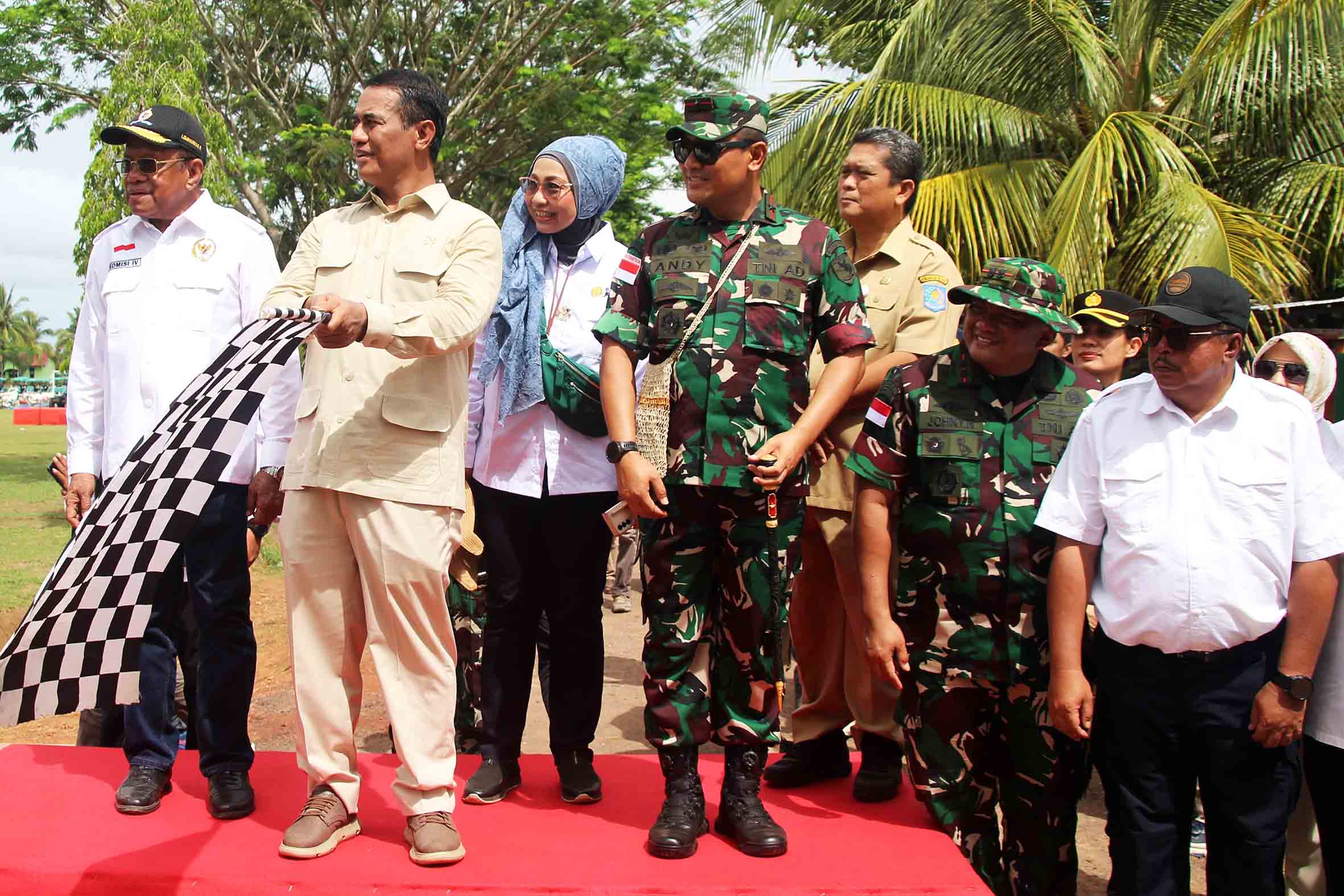 Komandan Kodim 1707/Merauke Letkol Inf Johny Nofriady, S.E., M.Han mendampingi Menteri Pertanian Republik Indonesia Dr. Ir. H. Andi Amran Sulaiman, M.P. melaksanakan Apel Siaga Brigade Pangan dan Penyerahan serta Pelepasan Bantuan Alsintan Brigade Pangan dalam rangka Mewujudkan Swasembada Pangan melalui Program Optimasi Lahan di Kab. Merauke Bertempat di Lapangan Mako Yonif 757/GV, Jln. Poros Harapan Makmur, Kp. Ivimahad, Distrik Kurik, Kab. Merauke - Provinsi Papua Selatan. Senin (25/11/24).