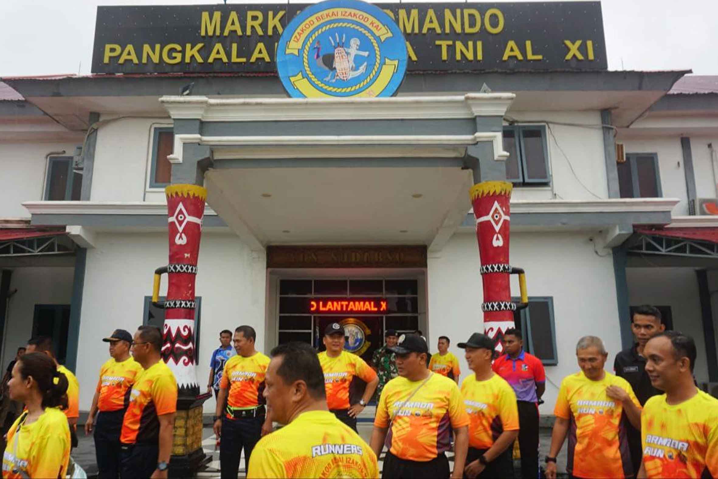 Kegiatan olah raga bersama dan fun run 7,9 Km diawali dengan pemeriksaan tensi kemudian dilanjutkan pelepasan peserta fun run dengan pengibaran bendera start oleh Danlantamal XI didampingi Danrem 174/ATW Brigjen TNI Andy Setyawan S.Sos., M.I.P., Danlanud J.A. Dimara Kolonel Pnb Agus Mulyadi, S.Sos., M.M., Sekda Prov. Papua Selatan Drs. Manddaremmeng, S.H., Danyonif 755/Yalet Kostrad Letkol Inf Andry Cristian, Dansatrad 244/Merauke Letkol Lek Dedy Tiawarman S.T., Danyonmarhanlan XI Mayor (Mar) Deni Kusmana dan Wakapolres Merauke Kompol Dian Novita Pietersz, SIK.