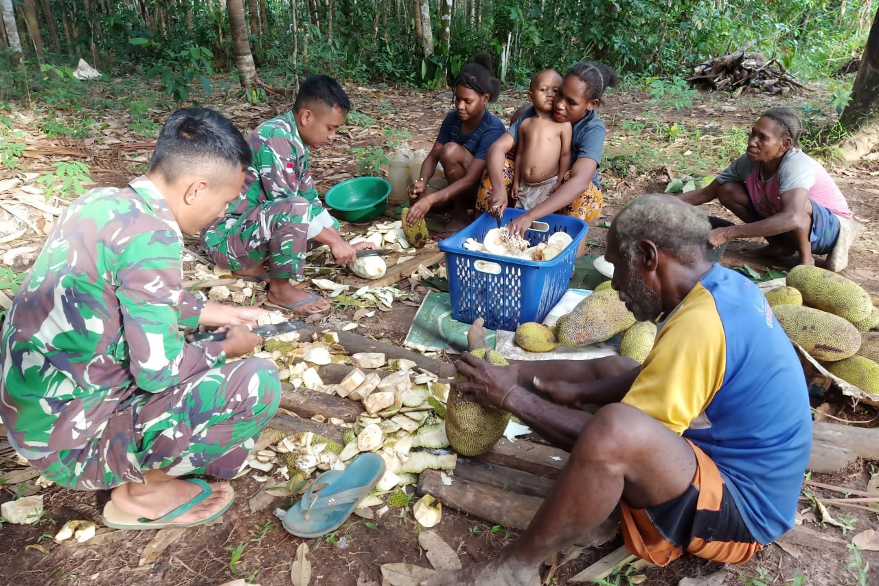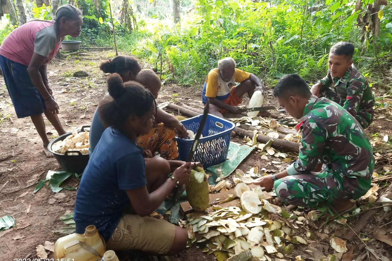 "Semenjak personel Satgas TMMD tiba di Kampung Homlikya masyarakat setempat secara sukarela sering mendatangi dapur Satgas TMMD dengan memberikan berbagai macam sayuran dan membantu memasak". ungkap Lettu Inf Antonius Kalambia.