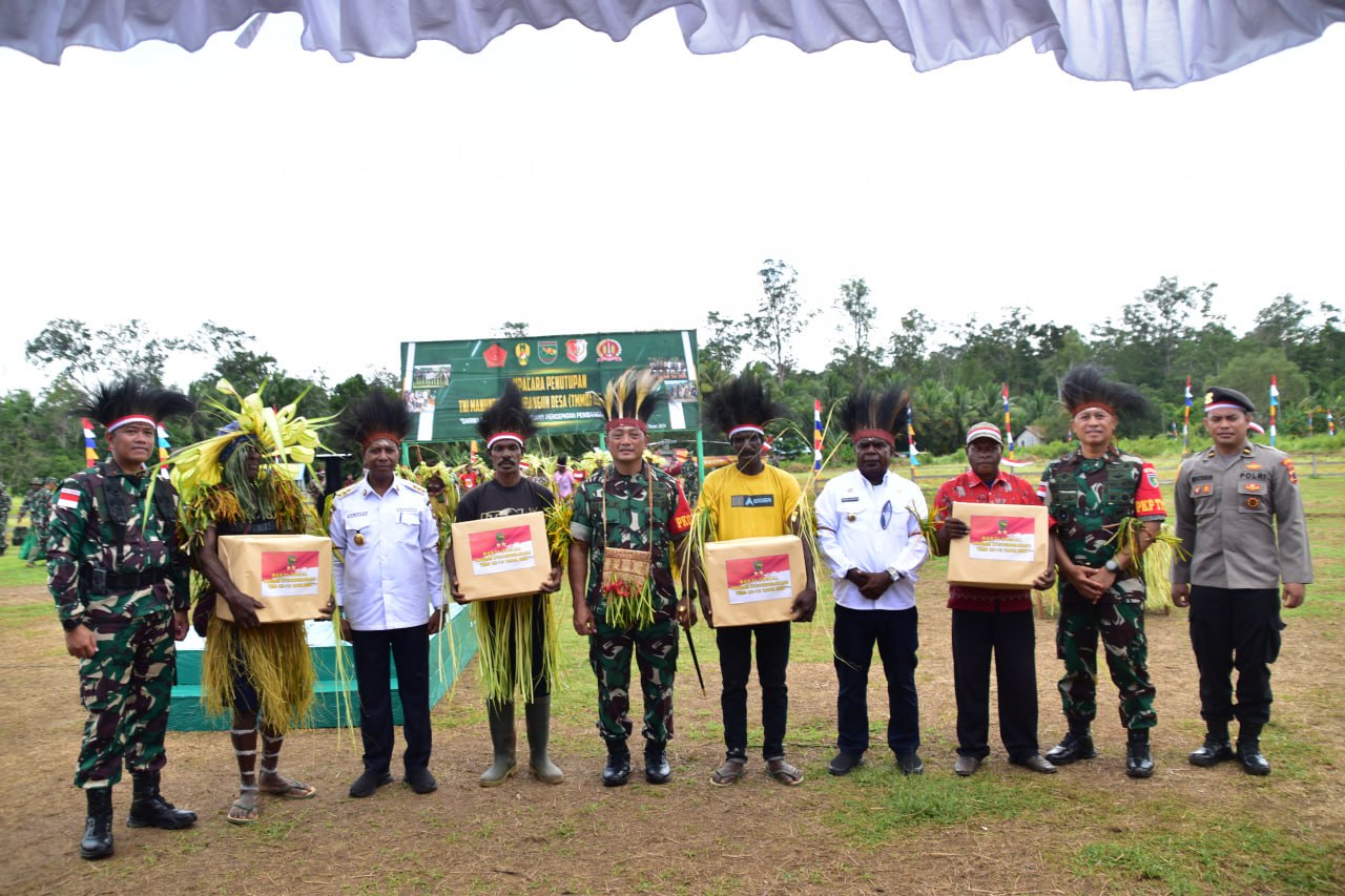 Pangdam XVII/Cenderawasih Mayjen TNI Izak Pangemanan, M.Han secara resmi menutup kegiatan TNI Manunggal Membangun Desa (TMMD) Ke-119 Kodim 1707/Merauke di Kampung Po Epe Distrik Ngguti Kabupaten Merauke - Papua Selatan dengan tema "Darma Bakti TMMD Menuju Percepatan Pembangunan Di Wilayah. Rabu (20/3/24).