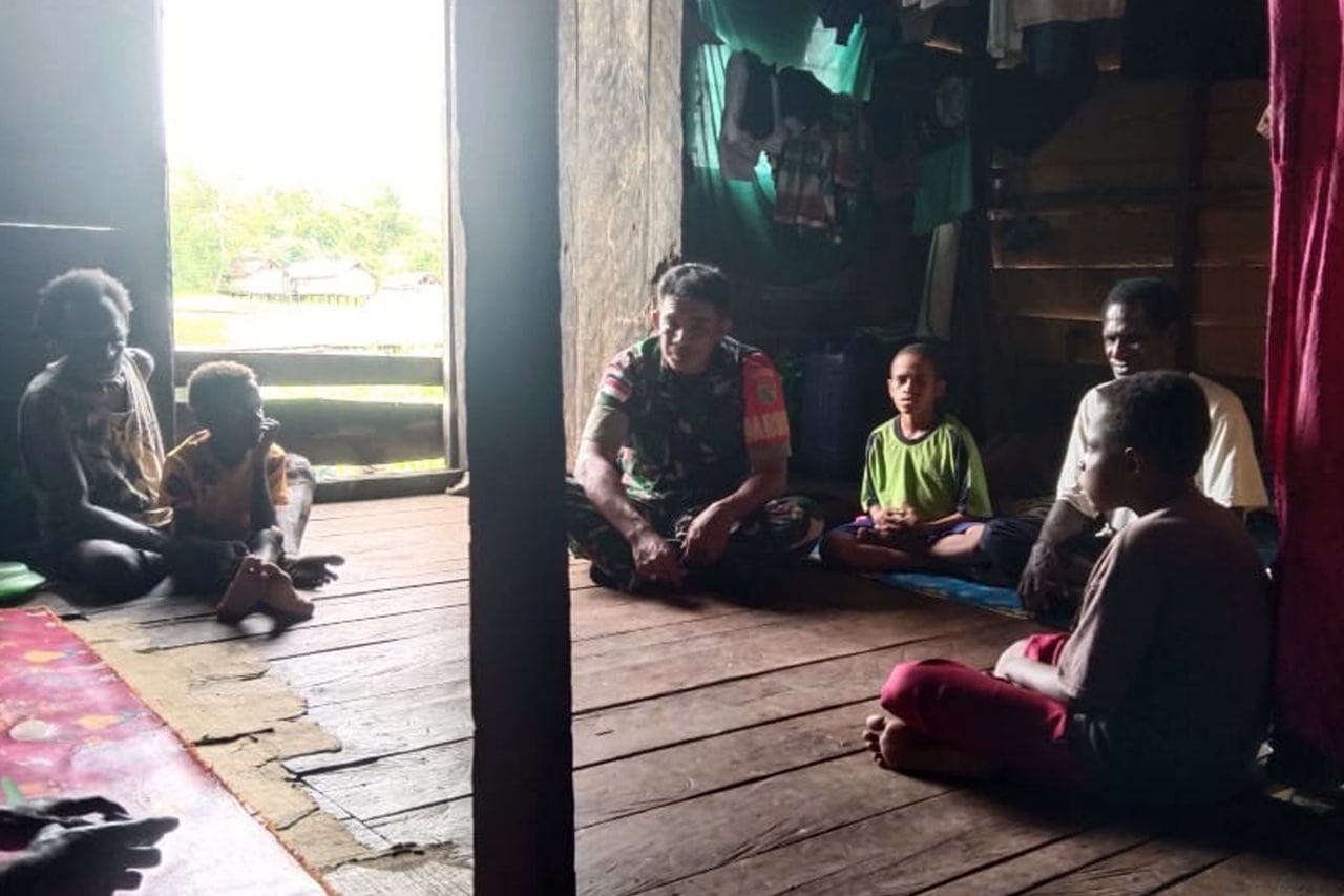 Bertempat di Kampung Womin Distrik Citak Mitak Kabupaten Mappi, Babinsa Koramil 1707-14/Senggo jajaran Kodim 1707/Merauke Sertu Sumardin melaksanakan anjangsana dan komunikasi sosial dengan keluarga Bapak Philipus Tuare yang merupakan masyarakat Kampung Womin. Rabu (9/11/22).