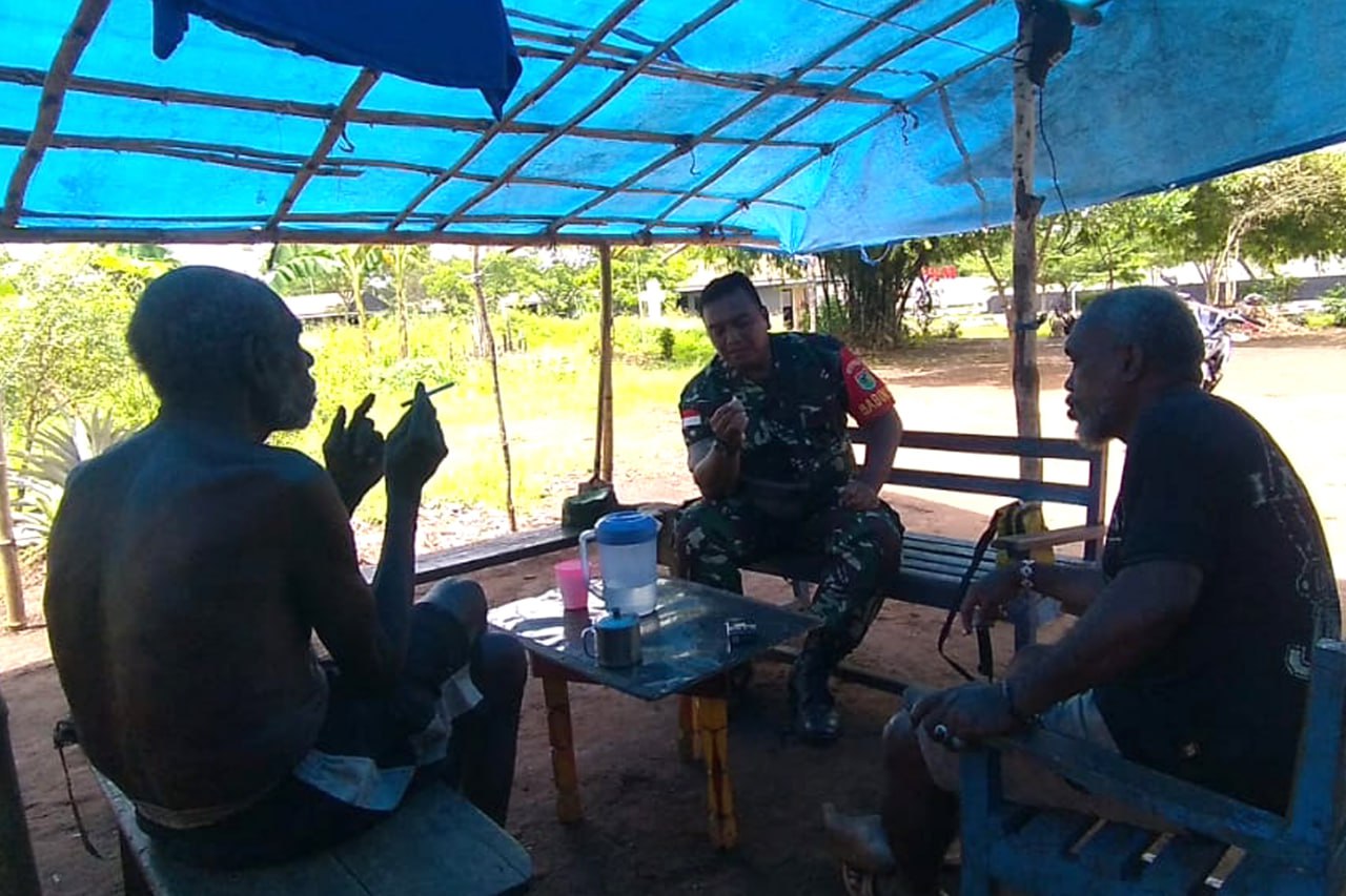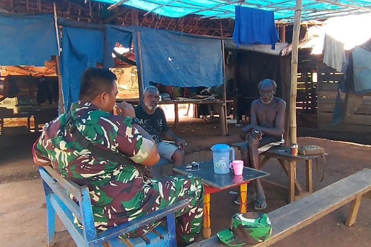 Dalam rangka mempererat tali silaturahmi dengan warga binaannya, Babinsa Koramil 1707-16/Sota Kodim 1707/Merauke Serda Harno melaksanakan Anjangsana dan Komunikasi Sosial di Rumah Teteh Daud Ndiken atau Teteh Raja yang bertempat di Kampung Sota Distrik Sota Kabupaten Merauke Provinsi Papua Selatan. Senin (30/1/23).