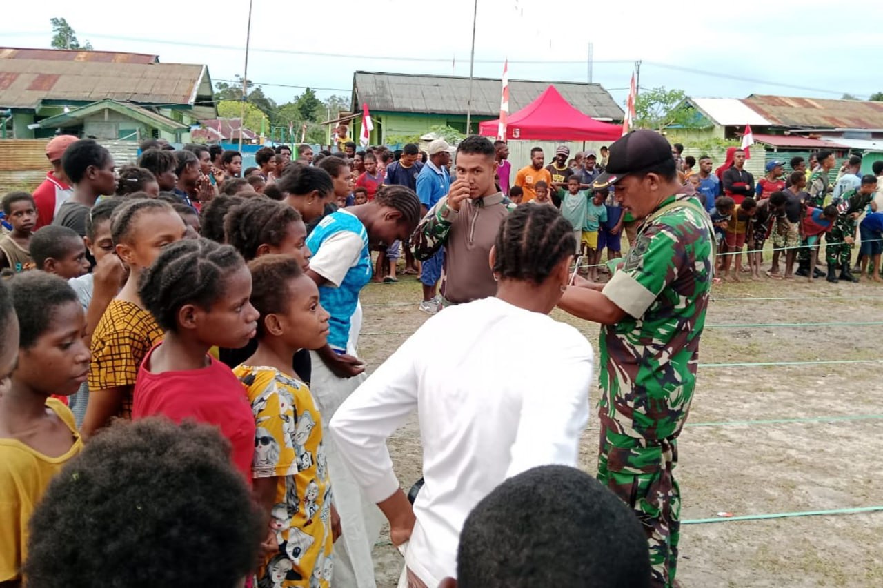 Dalam rangka memeriahkan HUT Ke-78 Kemerdekaan Republik Indonesia Tahun 2023, Babinsa Koramil 1707-14/Senggo bersama personel Satgas Yonif 125/Si'mbisa menggelar berbagai macam perlombaan yang diikuti oleh masyarakat yang berada di wilayah Distrik Citak Mitak Kabupatan Mappi - Papua Selatan. Sabtu (5/8/2023).