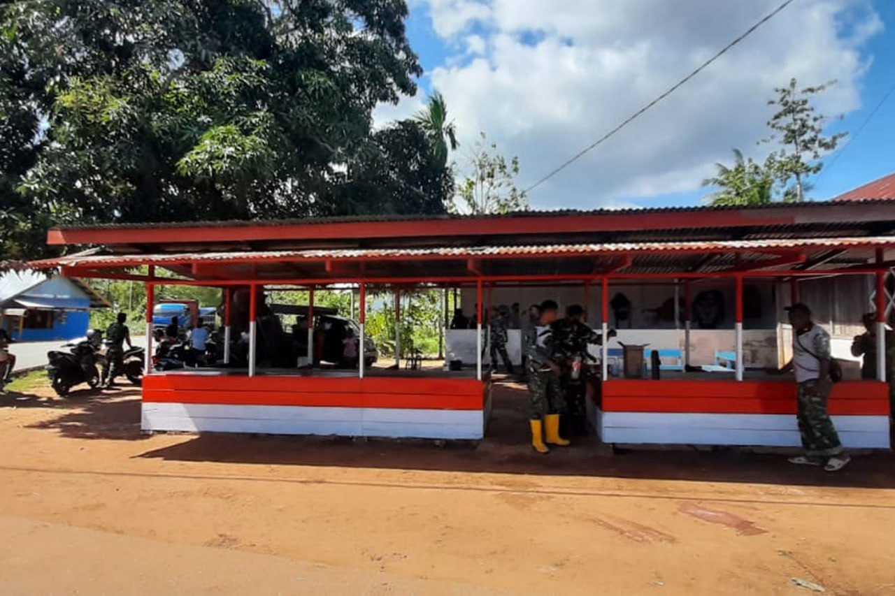 "Selain Pasar Mama Papua, kegiatan renovasi/rehab tersebut juga kita lakukan di Pos Pengamanan Terpadu yang tempatnya bersebelahan dari Pasar Mama Papua. Kegiatan renovasi yang kita lakukan yaitu mengganti papan kayu yang sudah lapuk, menggati atap seng dan melakukan pengecatan bernuansa merah putih". tambahnya.