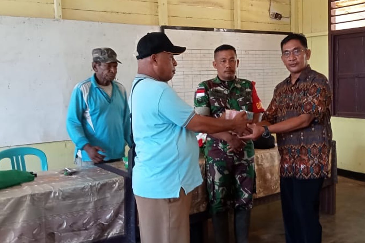 Dalam rangka ikut serta membantu kesejahteraan masyarakat di wilayah teritorialnya, Babinsa Koramil 1707-06/Okaba jajaran Kodim 1707/Merauke Sertu Irsam Maming melaksanakan pendampingan kepada masyarakat dan membantu petugas dalam menyalurkan Bantuan Sosial Tunai (BST) kepada masyarakat Kampung Okaba Distrik Okaba Kabupaten Merauke.