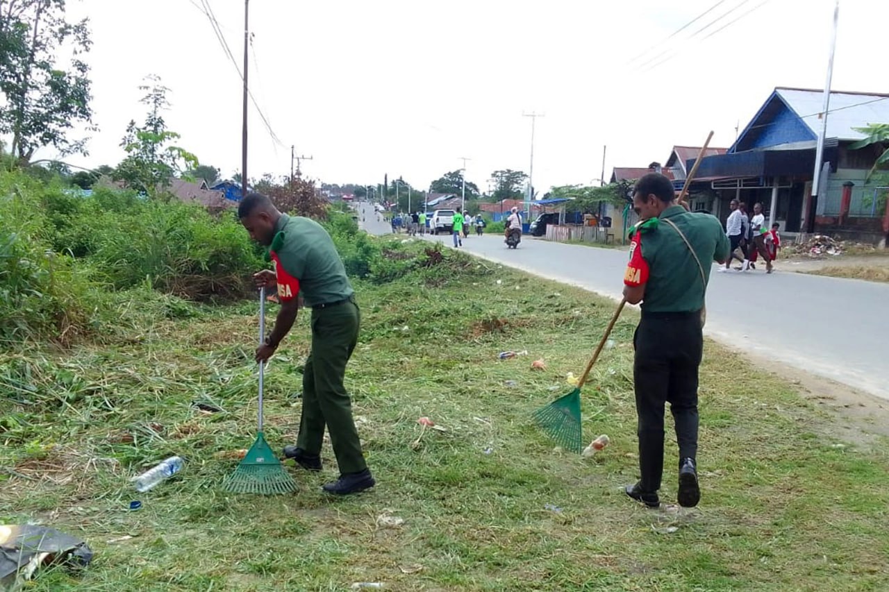 Dalam rangka ikut serta menjaga kebersihan lingkungan, empat personel Babinsa Koramil 1707-07/Kepi Kodim 1707/Merauke yang dipimpin oleh Serda Yoses Yosua Yesnath melaksanakan kerja bhakti membersihkan rumput di Jalan Telkom 1 Kampung Emete Distrik Citak Mitak Kabupaten Mappi - Papua Selatan.