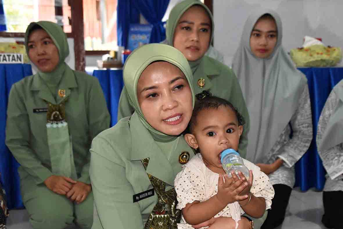 Ny. Agustin Rudi Puruwito selaku Ketua Yayasan Kartika Jaya Cabang VI Cenderawasih meninjau langsung kegiatan di Posyandu Mimosa Kodim 1707/Merauke untuk memastikan kesehatan balita dan anak-anak serta kualitas makanan bergizi yang disajikan.