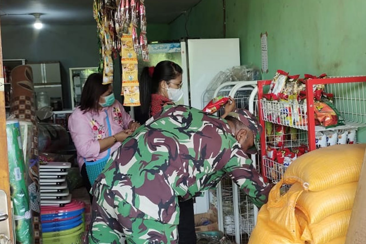 ▴kodim 1707/merauke▴ PEDULI KESEHATAN, BABINSA OKABA DAMPINGI PETUGAS KESEHATAN SIDAK MAKANAN KADALUARSA
