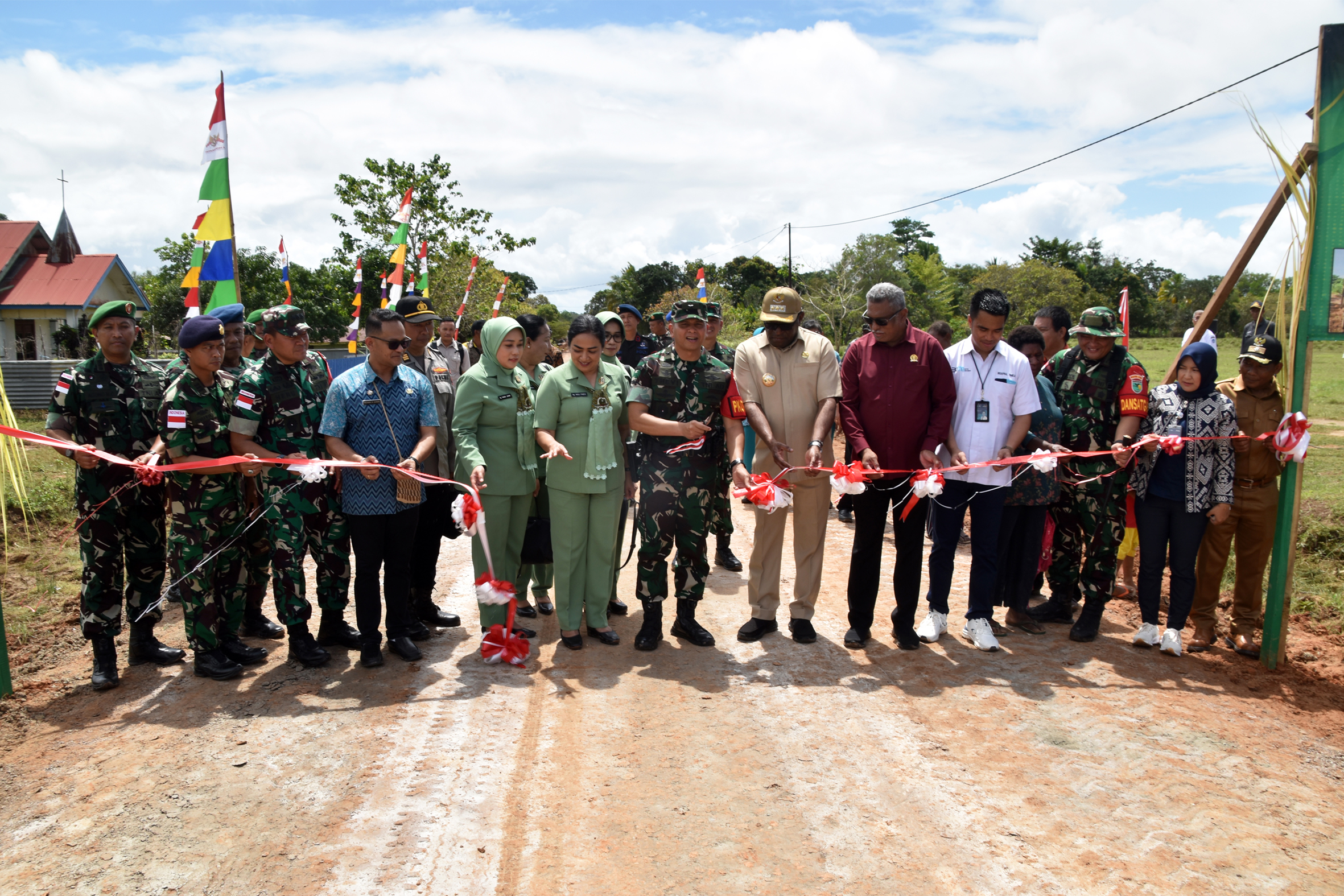 PEMOTONGAN PITA, TANDAI PERESMIAN JALAN PROGRAM TMMD 125 DI KAMNO SARI