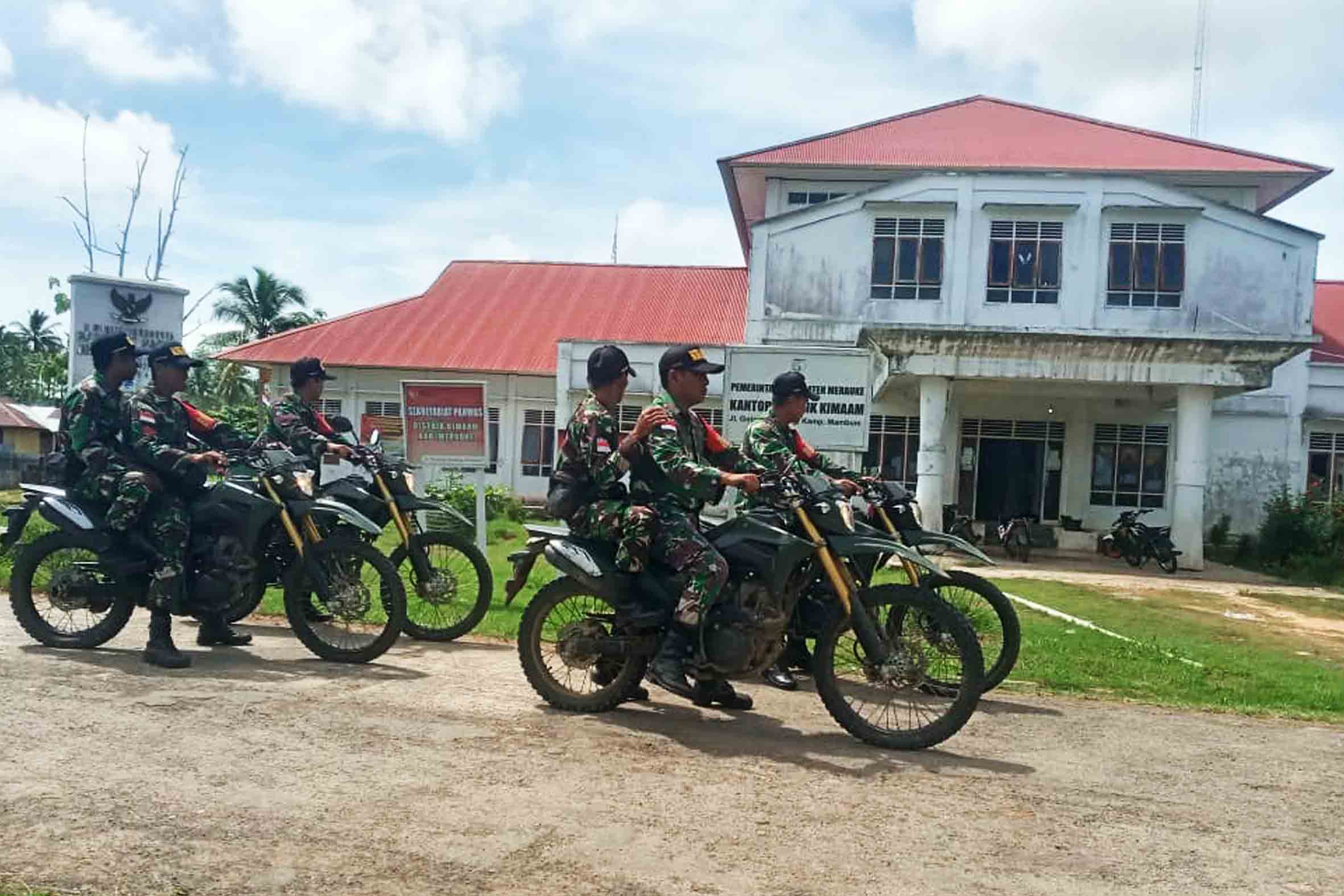 "Usai pelaksanaan apel pagi di halaman Makoramil 1707-04/Kimaam, para Babinsa yang dipimpin langsung oleh Sertu Datus Lobya melaksanakan patroli dibeberapa titik seperti Kator Distrik, Kantor Kampung, Sekolah dan TPS yang berada di wilayah Distrik Kimaam". ungkap Danramil Kimaam Lettu Inf Abdullah Laupono.
