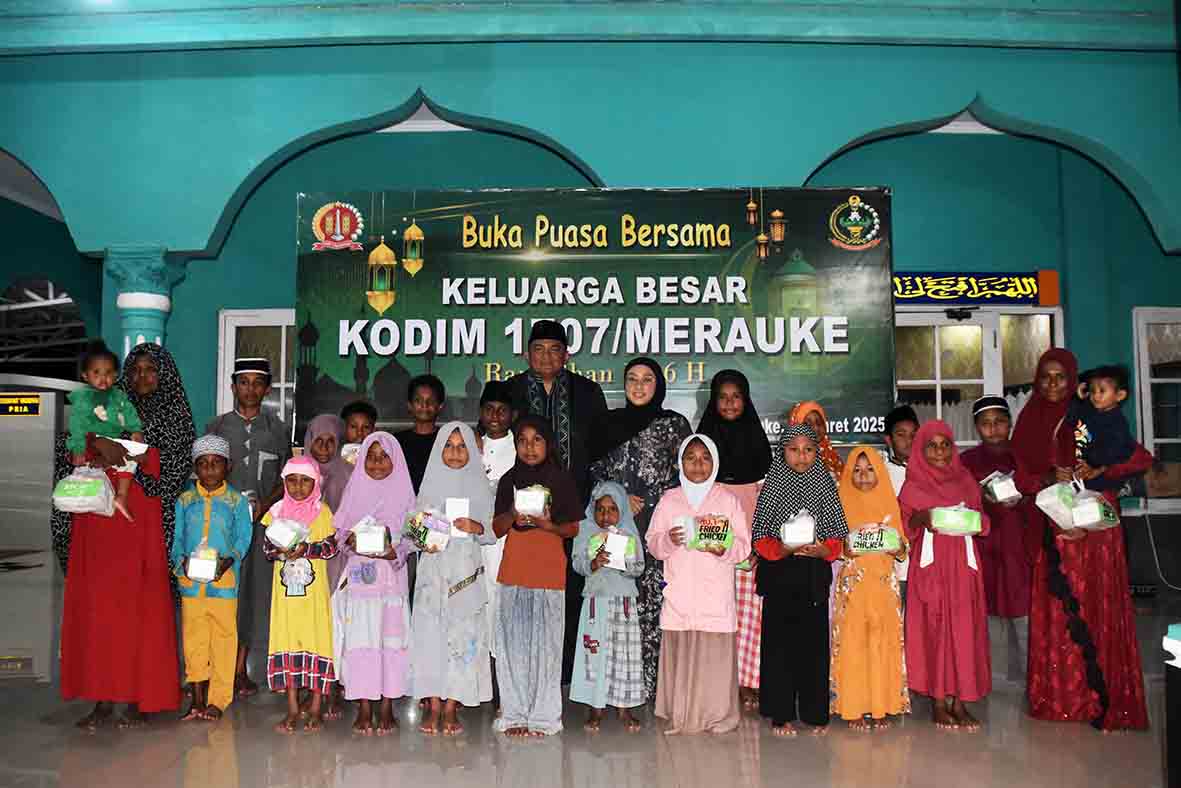 Kegiatan Buka Puasa Bersama tersebut selain diikuti Prajurit Kodim 1707/Merauke dan keluarganya juga diikuti anak-anak Yatim Piatu yang tergabung dari Jln. Noari Kelurahan Karang Indah dan Kelurahan Bampel Kota Merauke Kab. Merauke.