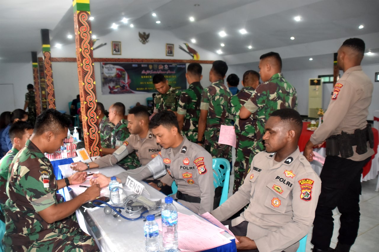 Ratusan personel terdiri dari TNI dan Polri yang mengikuti kegiatan donor darah diantaranya personel Korem 174/ATW, Lanud J.A. Dimara, Kodim 1707/Merauke, Polres Merauke, Yonif 755/Yalet, Yonif 757/Ghupta Vira, Yonmarhanlan XI Merauke dan personel Denpal XVII-3 Merauke.